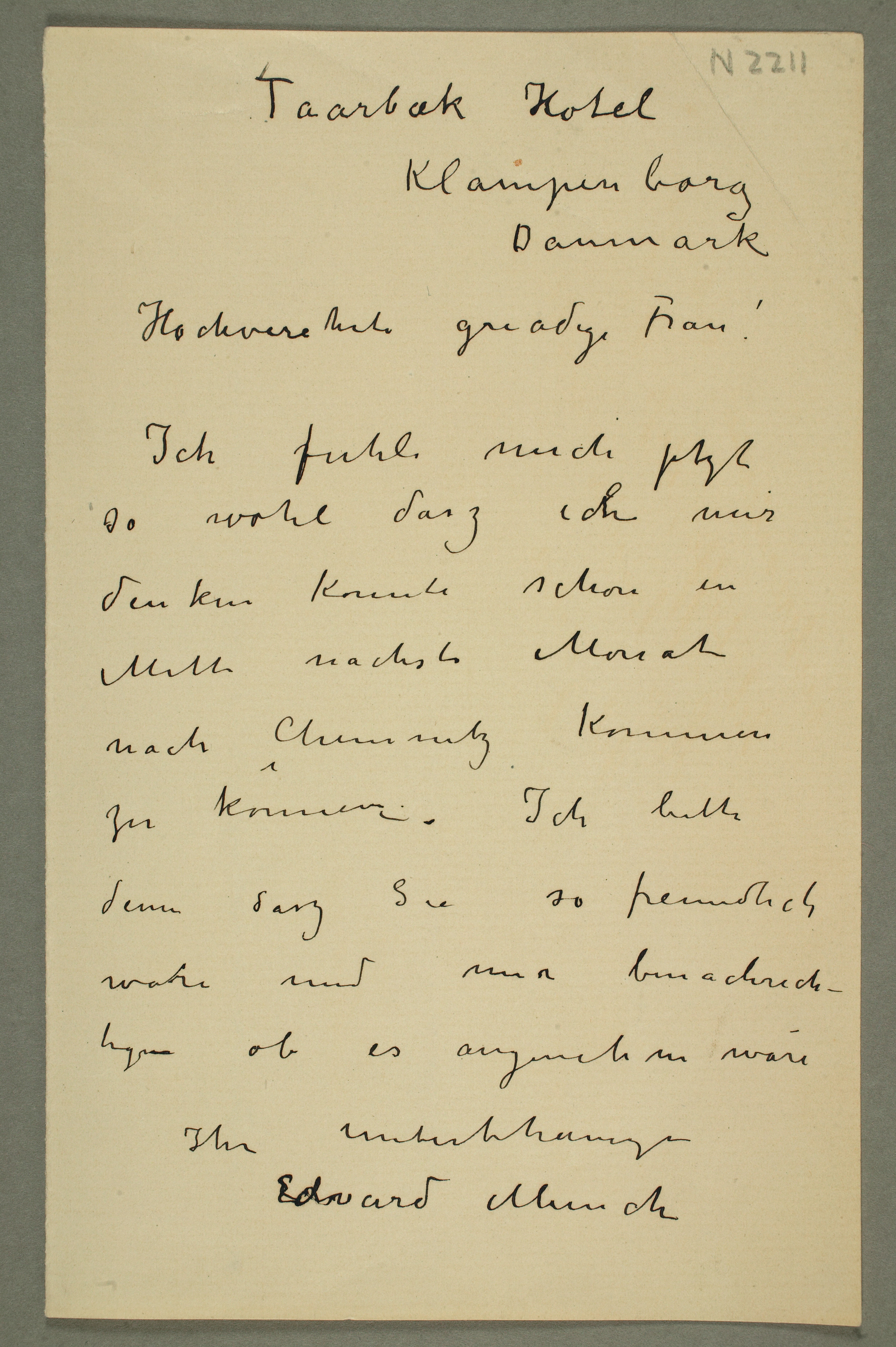 MM N 2211, Munchmuseet. Ikke datert. Brevutkast til Hanni Esche.