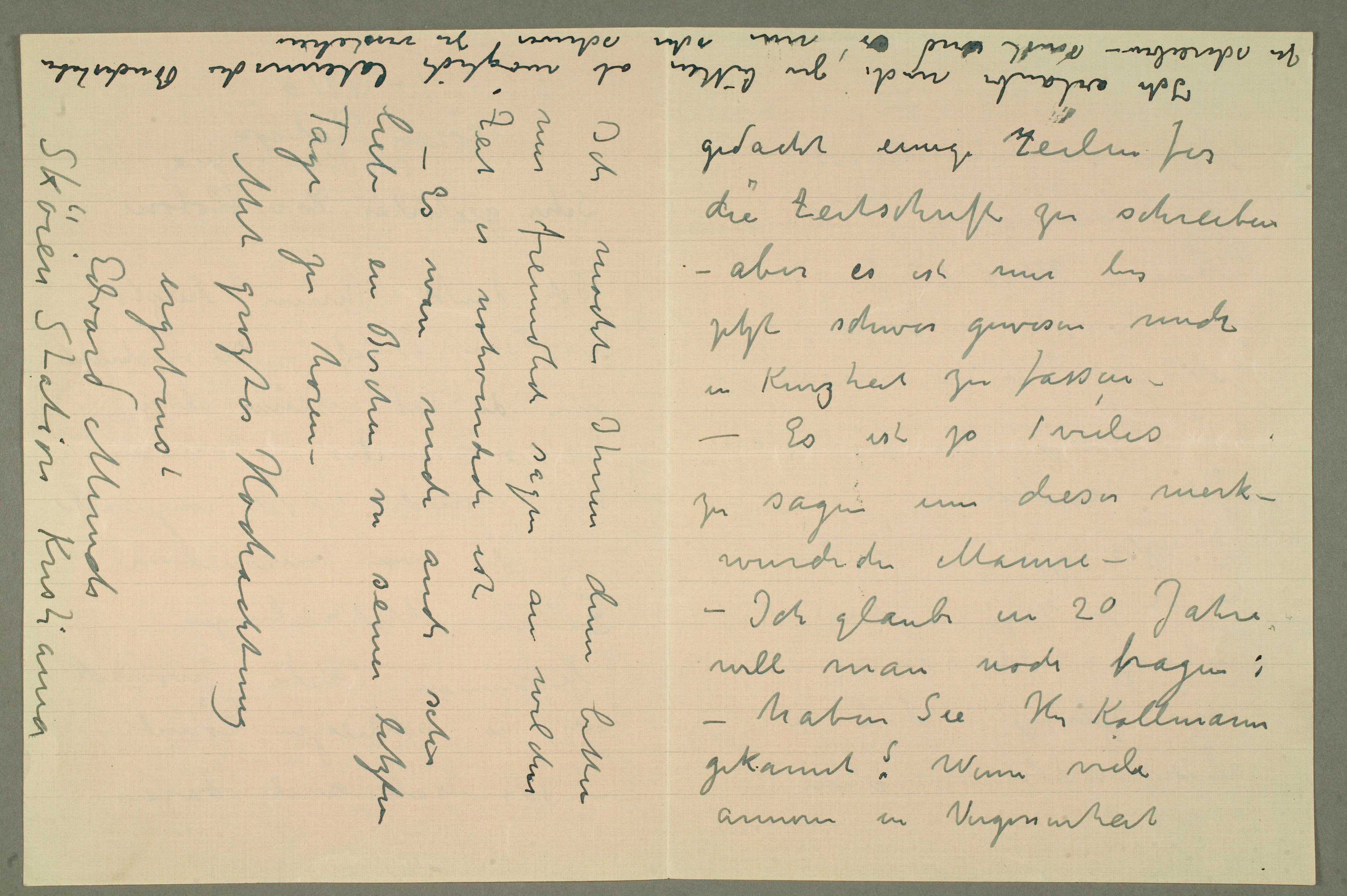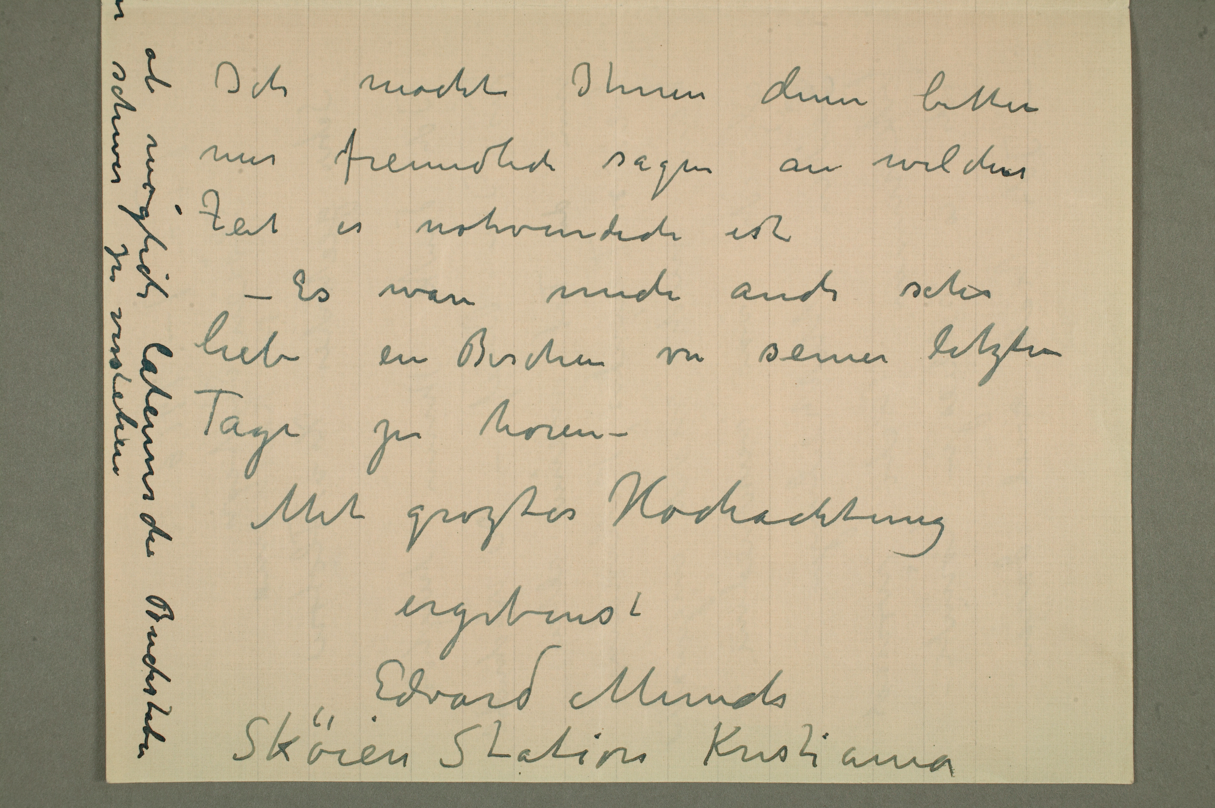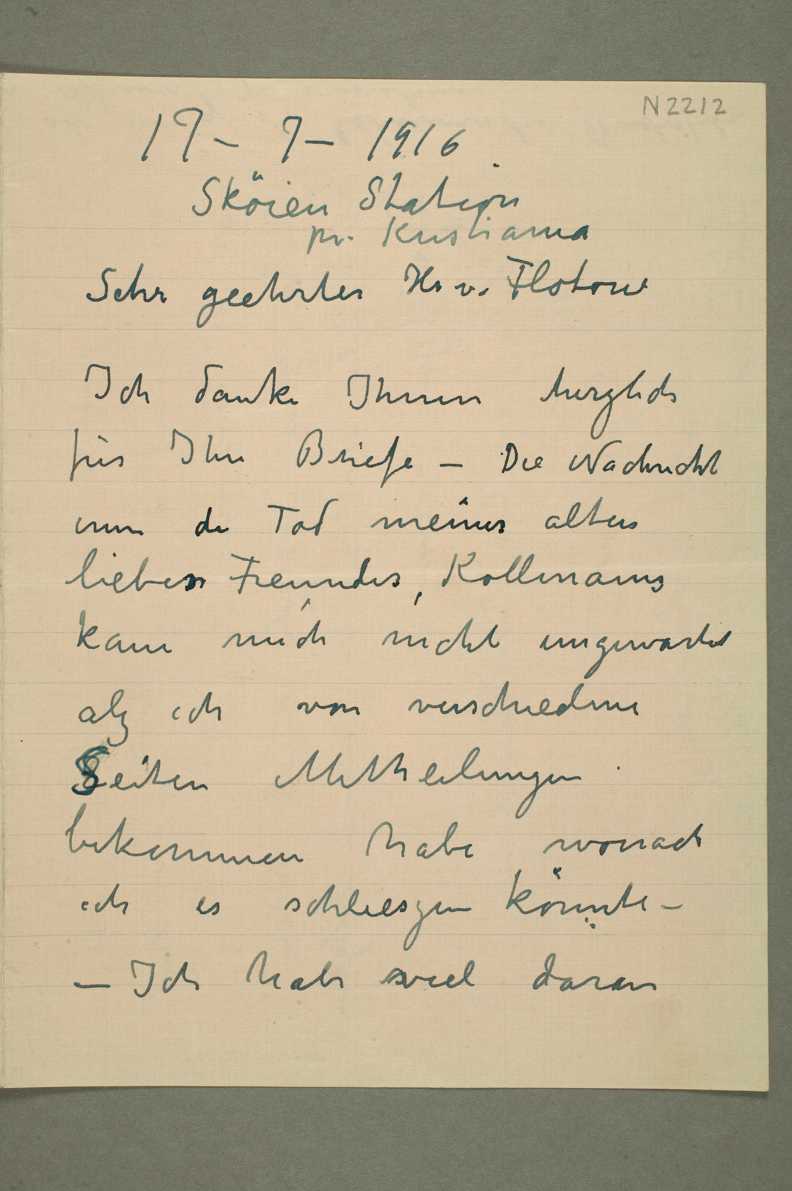 MM N 2212, Munchmuseet. Datert 17.7.1916. Brevutkast til H. von Flotow.