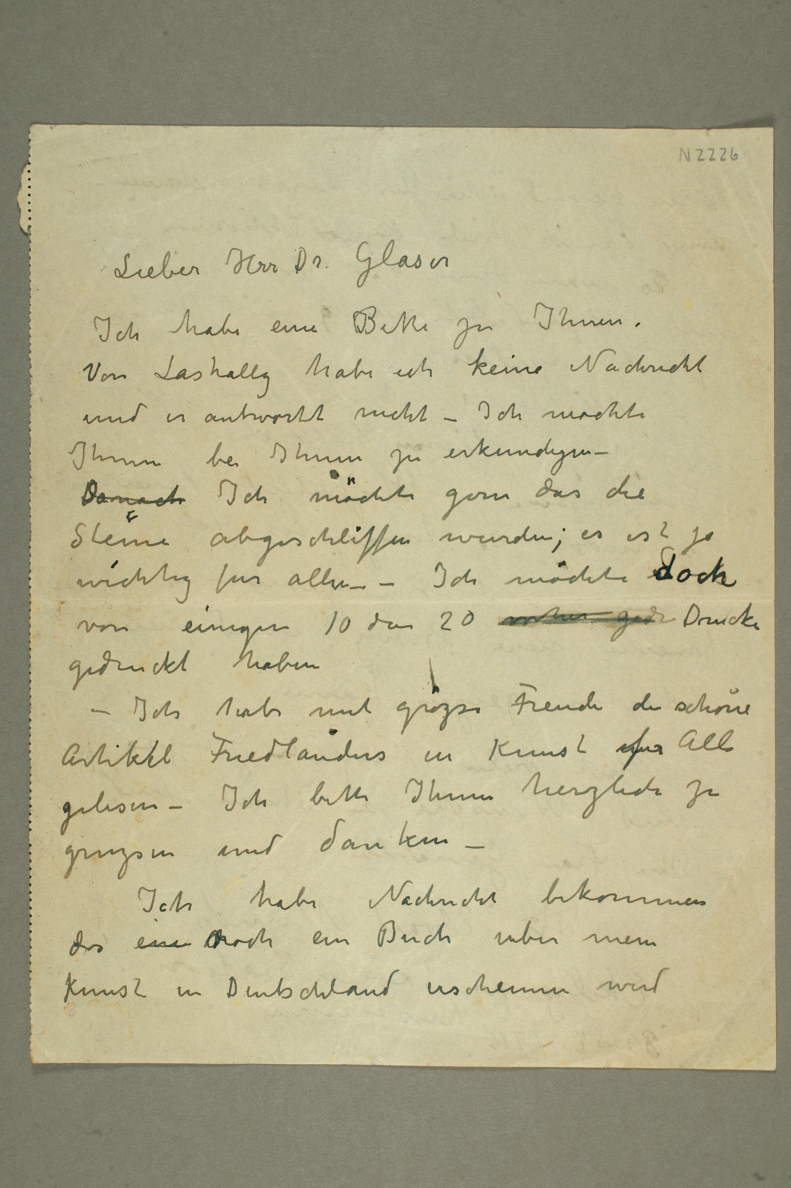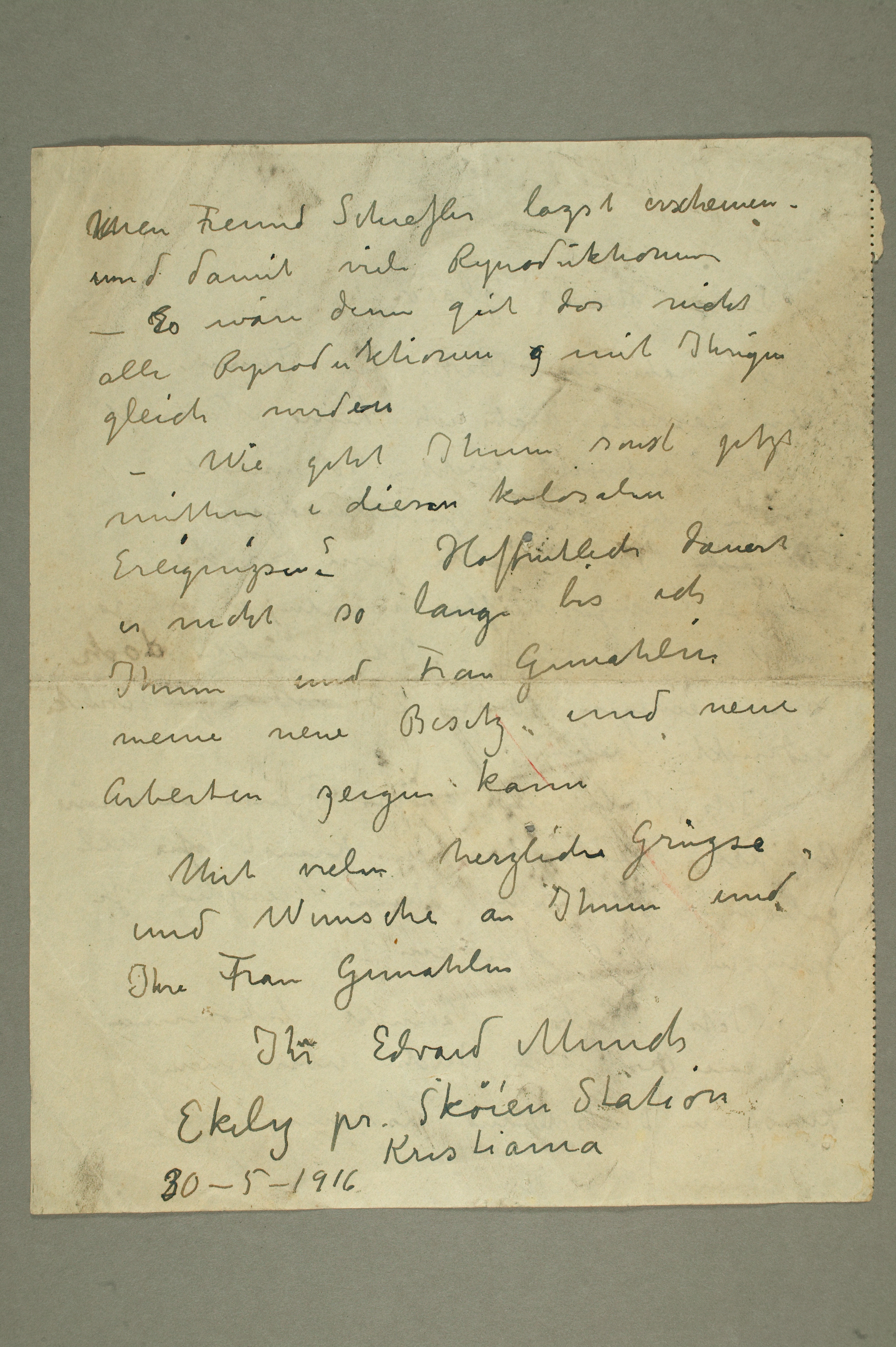 MM N 2226, Munchmuseet. Datert 30.5.1916. Brevutkast til Curt Glaser.