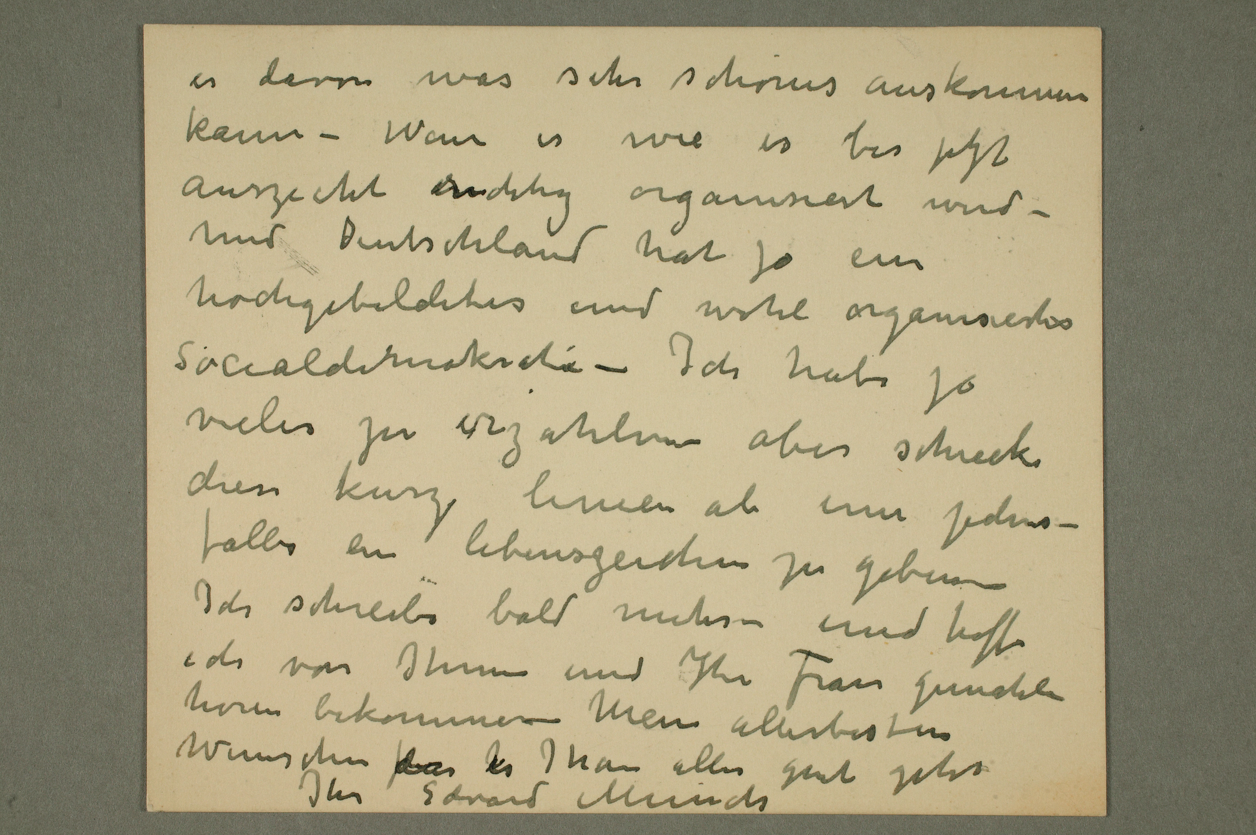 MM N 2229, Munchmuseet. Datert 9.12.1918. Brevutkast til Curt Glaser.