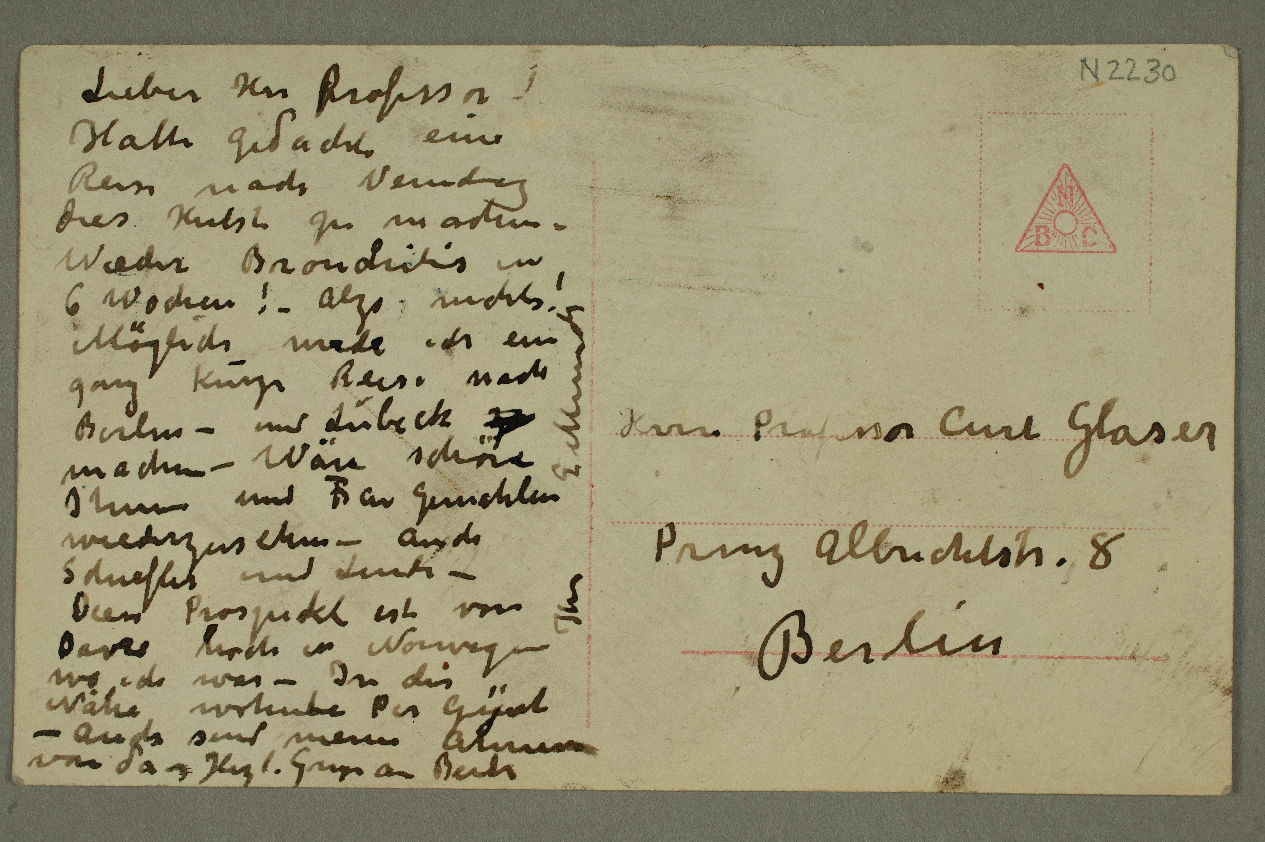 MM N 2230, Munchmuseet. Ikke datert. Brevutkast til Curt Glaser.