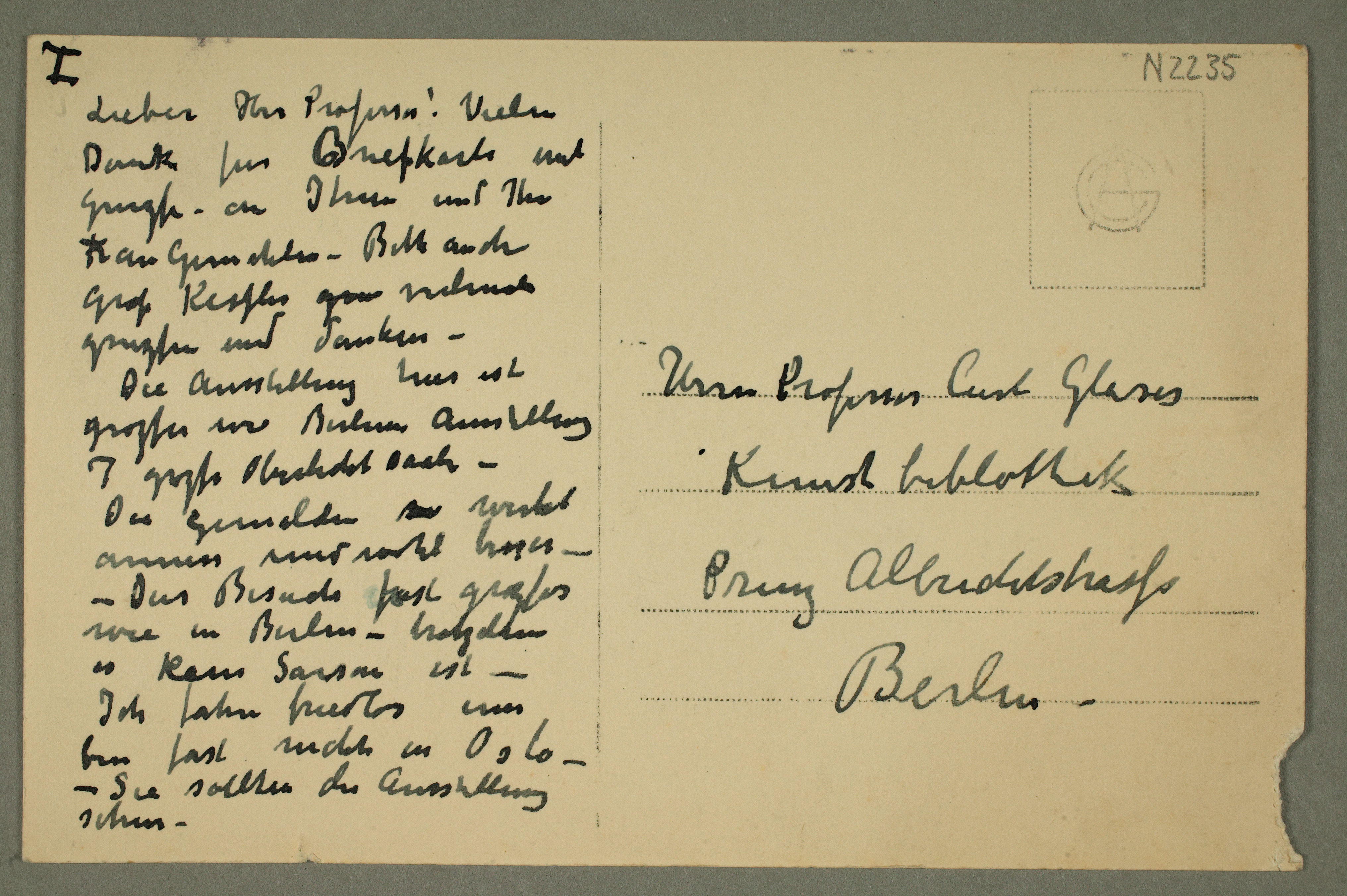 MM N 2235, Munchmuseet. Ikke datert. Brevutkast til Curt Glaser.