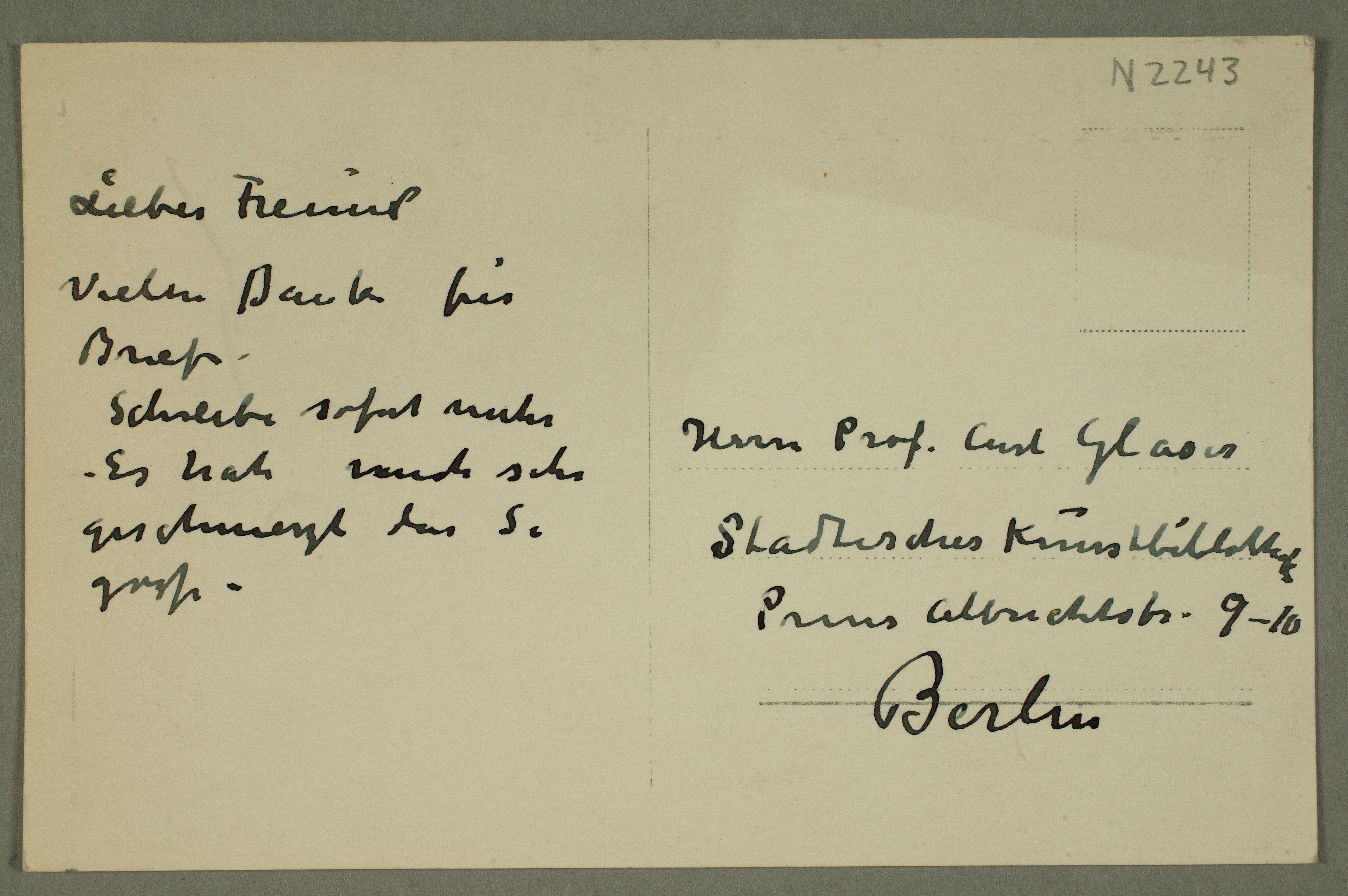 MM N 2243, Munchmuseet. Ikke datert. Brevutkast til Curt Glaser.