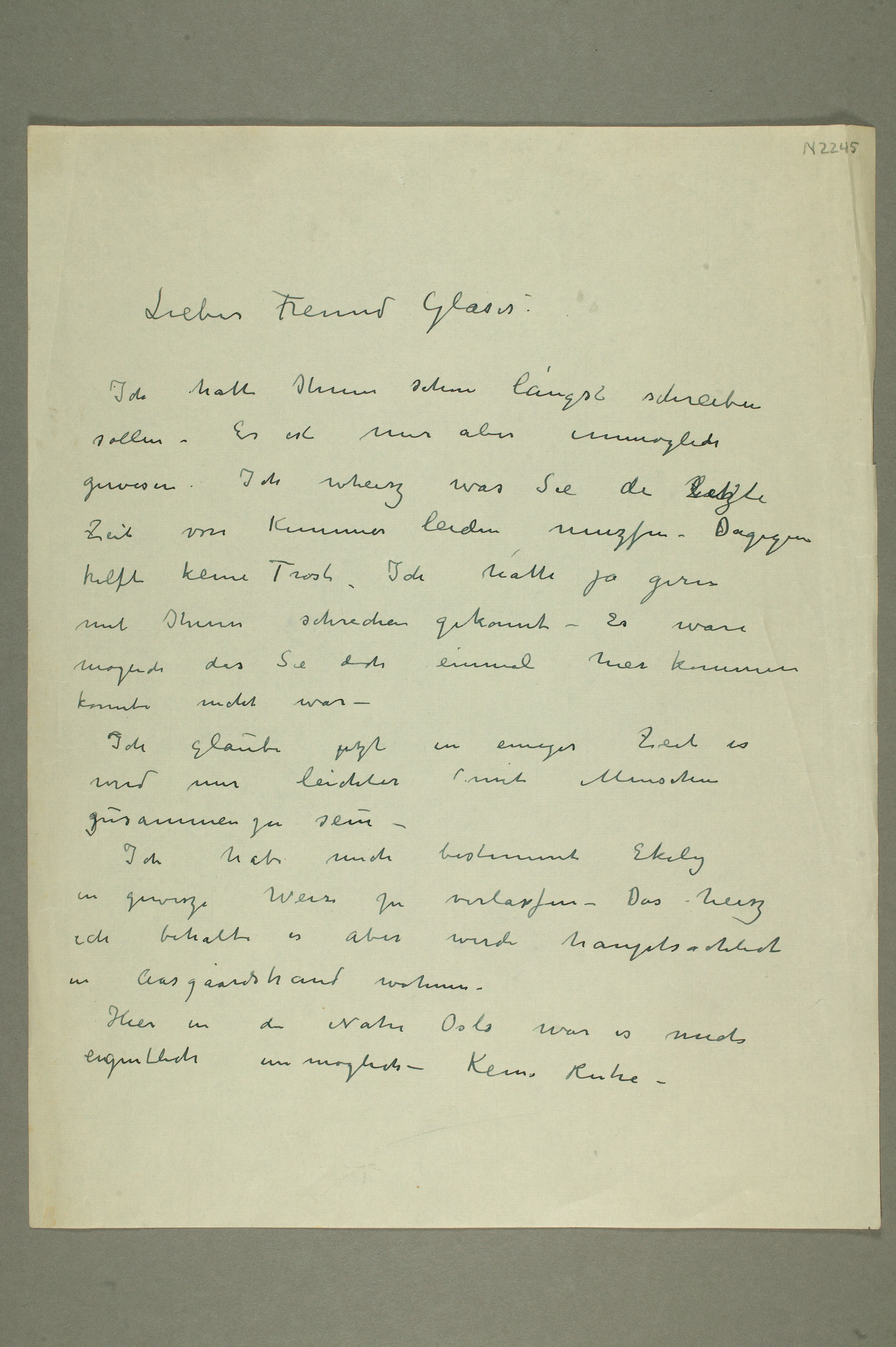 MM N 2245, Munchmuseet. Ikke datert. Brevutkast til Curt Glaser.