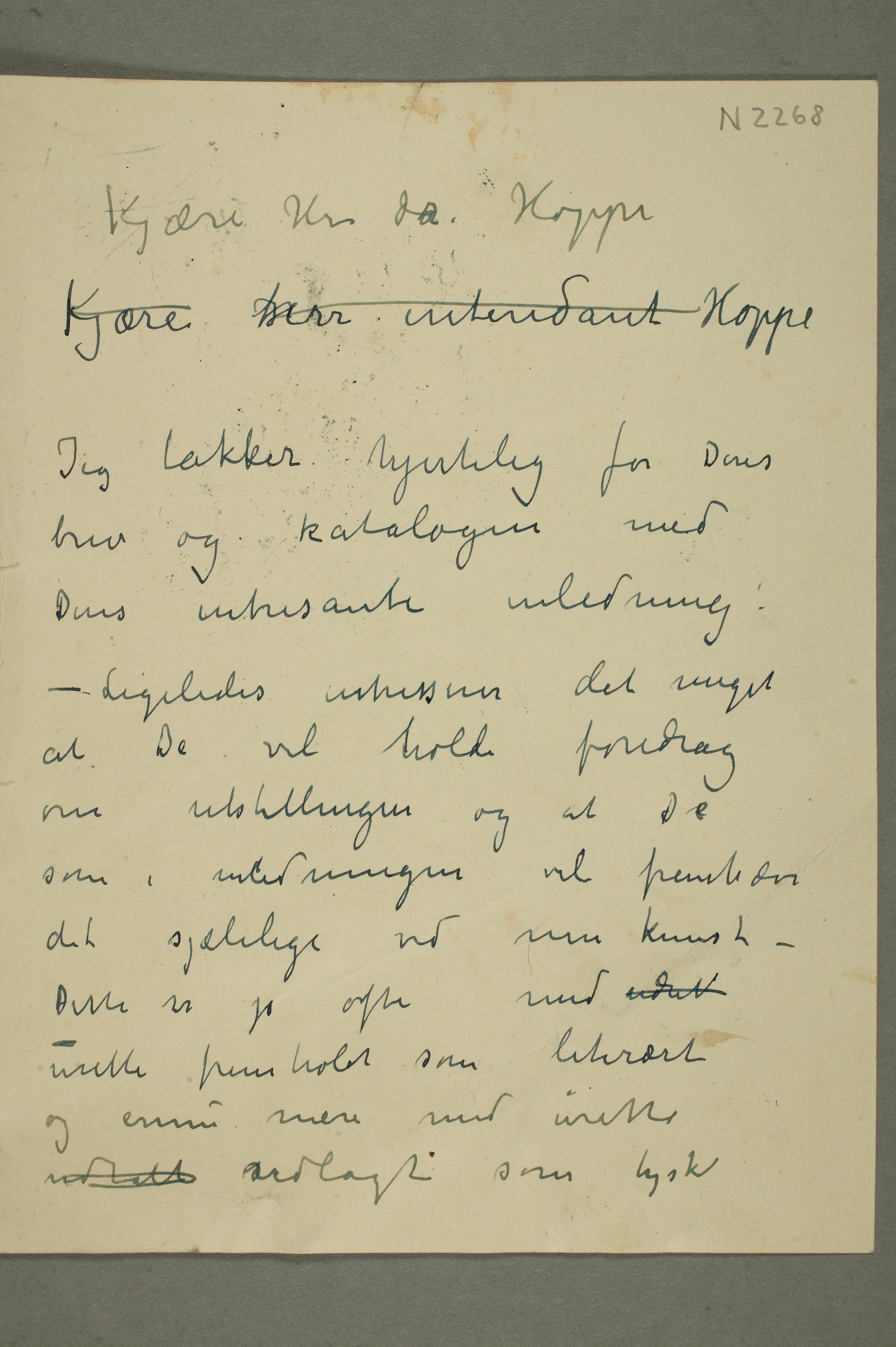 MM N 2268, Munchmuseet. Datert 1929–1930. Brevutkast til Ragnar Hoppe.
