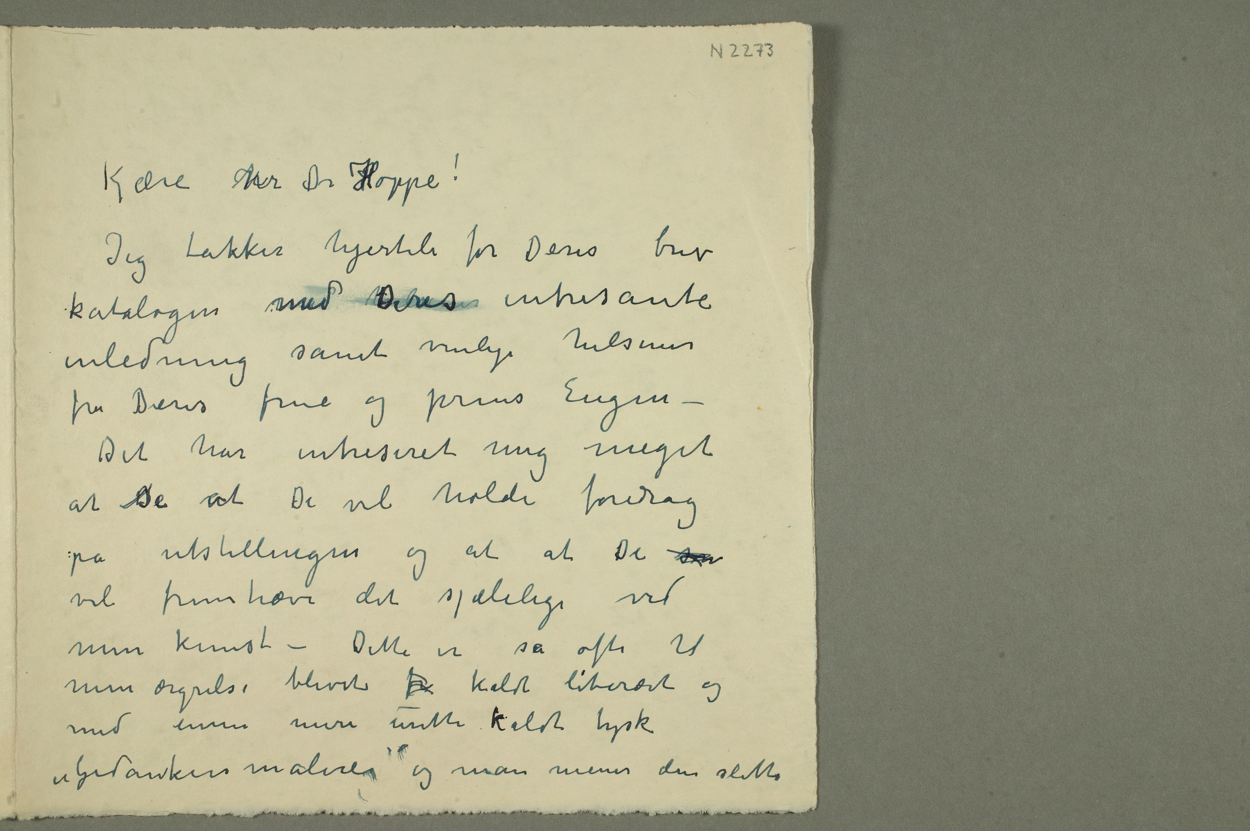 MM N 2273, Munchmuseet. Datert 1929. Brevutkast til Ragnar Hoppe.