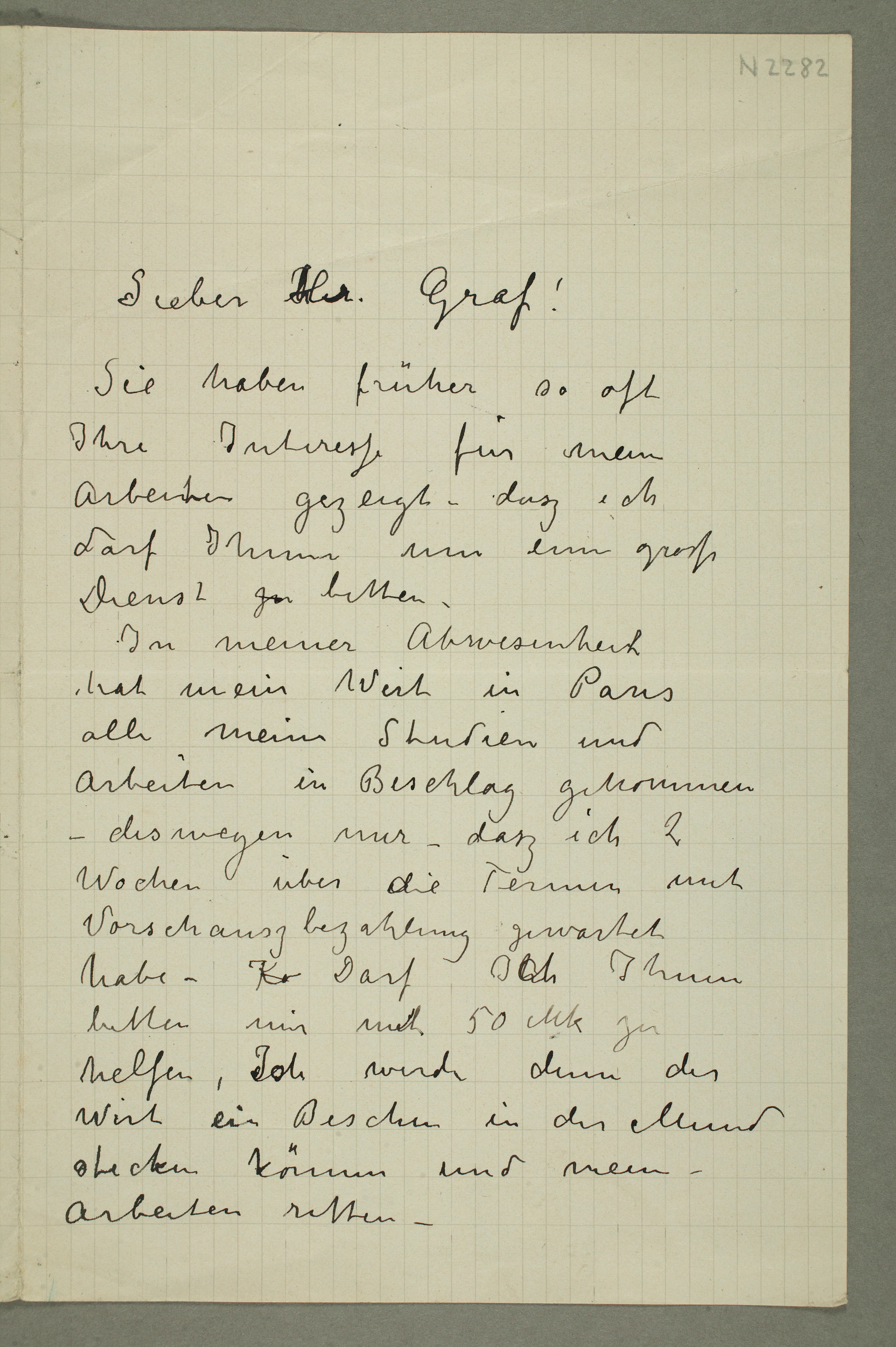 MM N 2282, Munchmuseet. Datert 1896. Brevutkast til Harry Kessler.