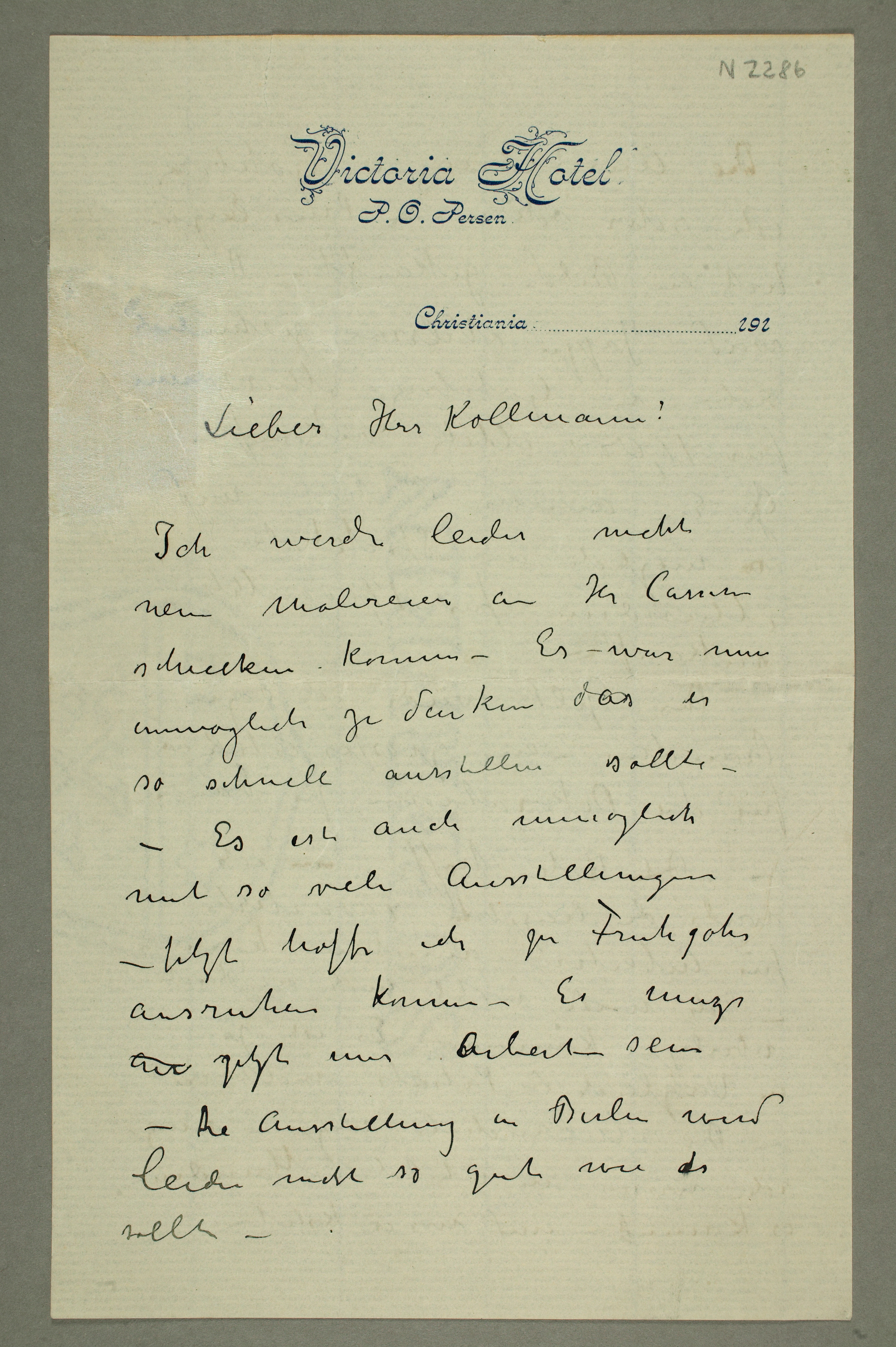 MM N 2286, Munchmuseet. Datert 1912. Brevutkast til Albert Kollmann.