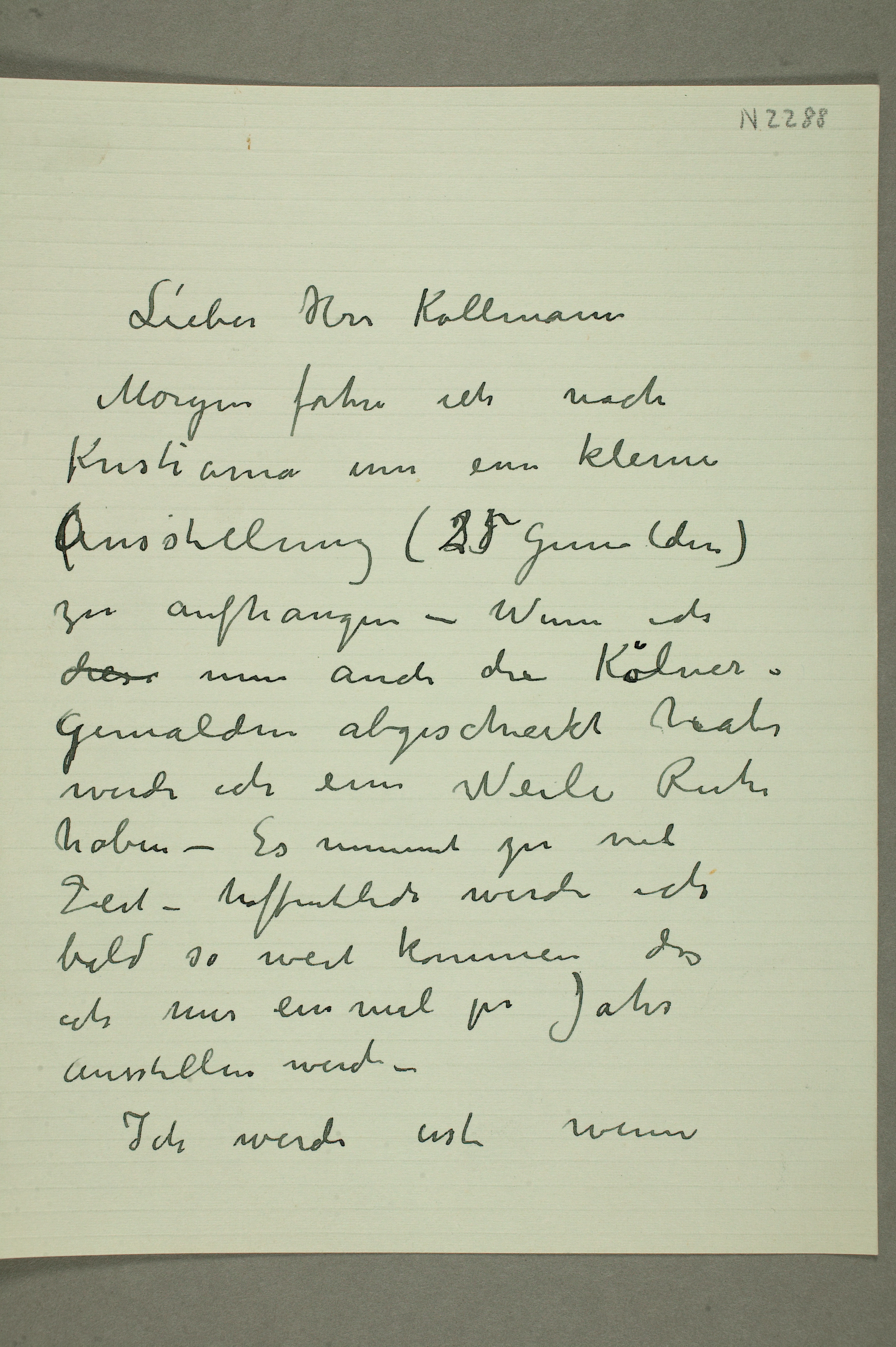 MM N 2288, Munchmuseet. Datert 1912. Brevutkast til Albert Kollmann.