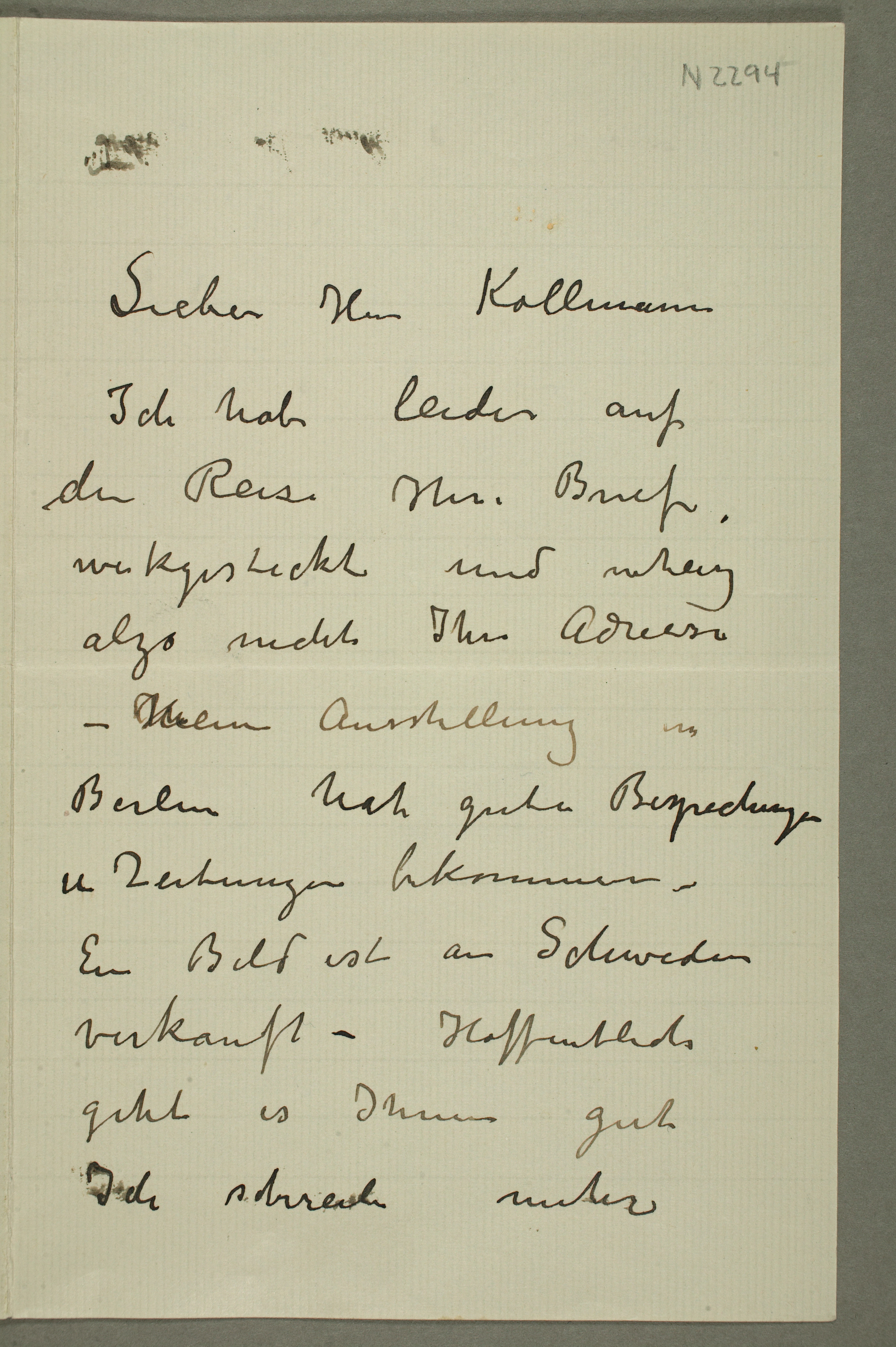 MM N 2294, Munchmuseet. Datert 1906. Brevutkast til Albert Kollmann.