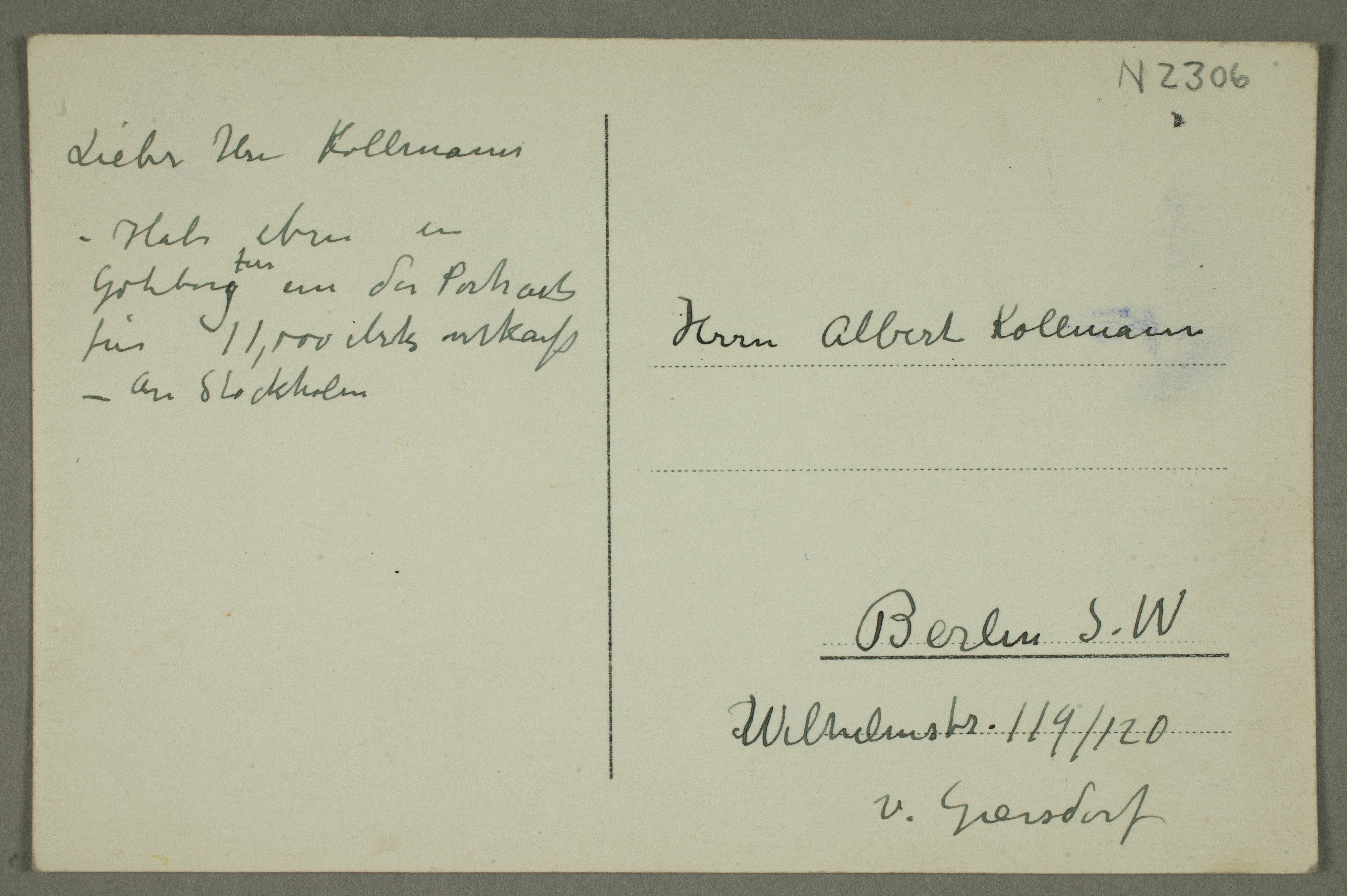 MM N 2306, Munchmuseet. Ikke datert. Brevutkast til Albert Kollmann.