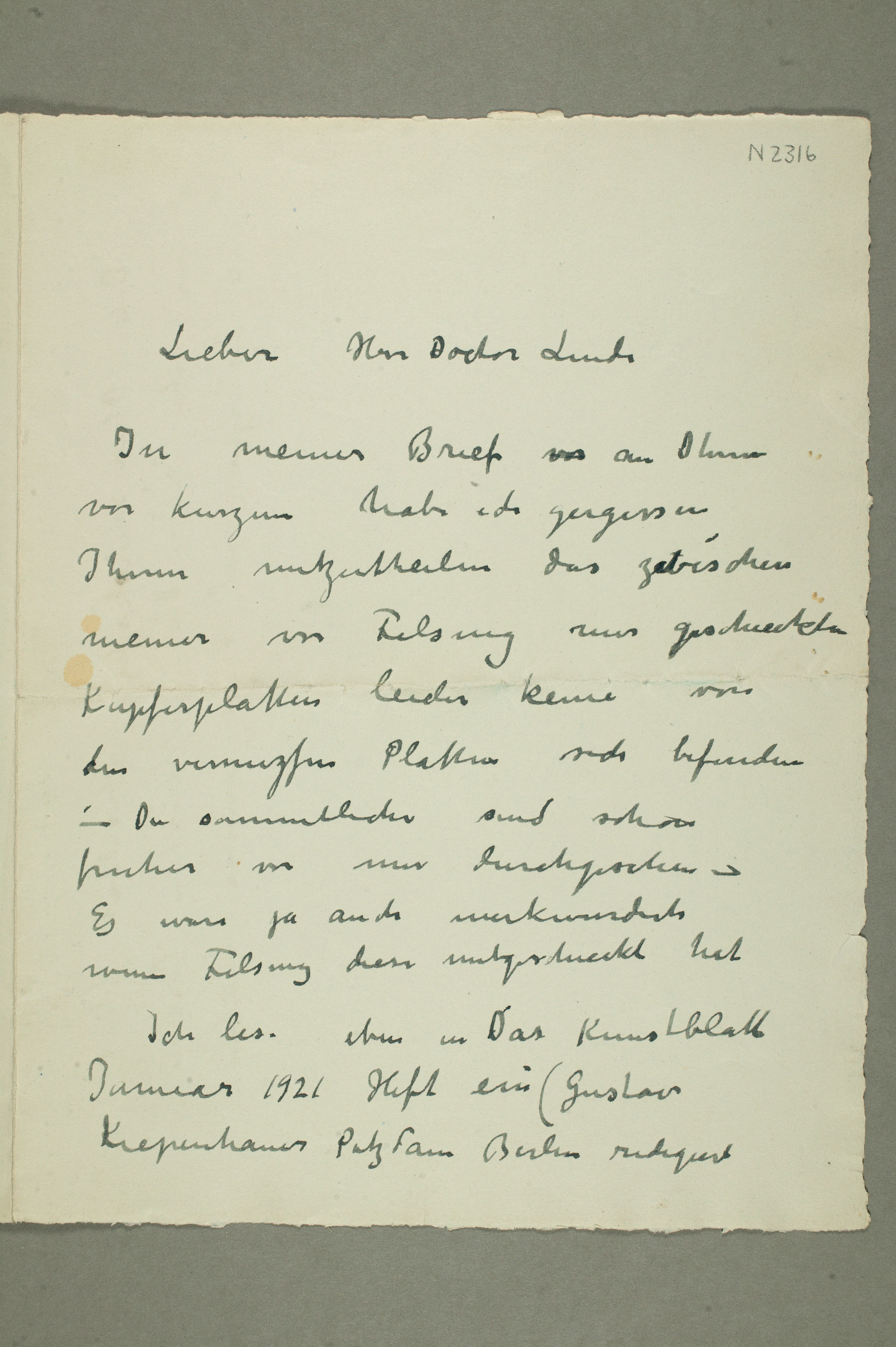 MM N 2316, Munchmuseet. Datert 1921. Brevutkast til Max Linde.