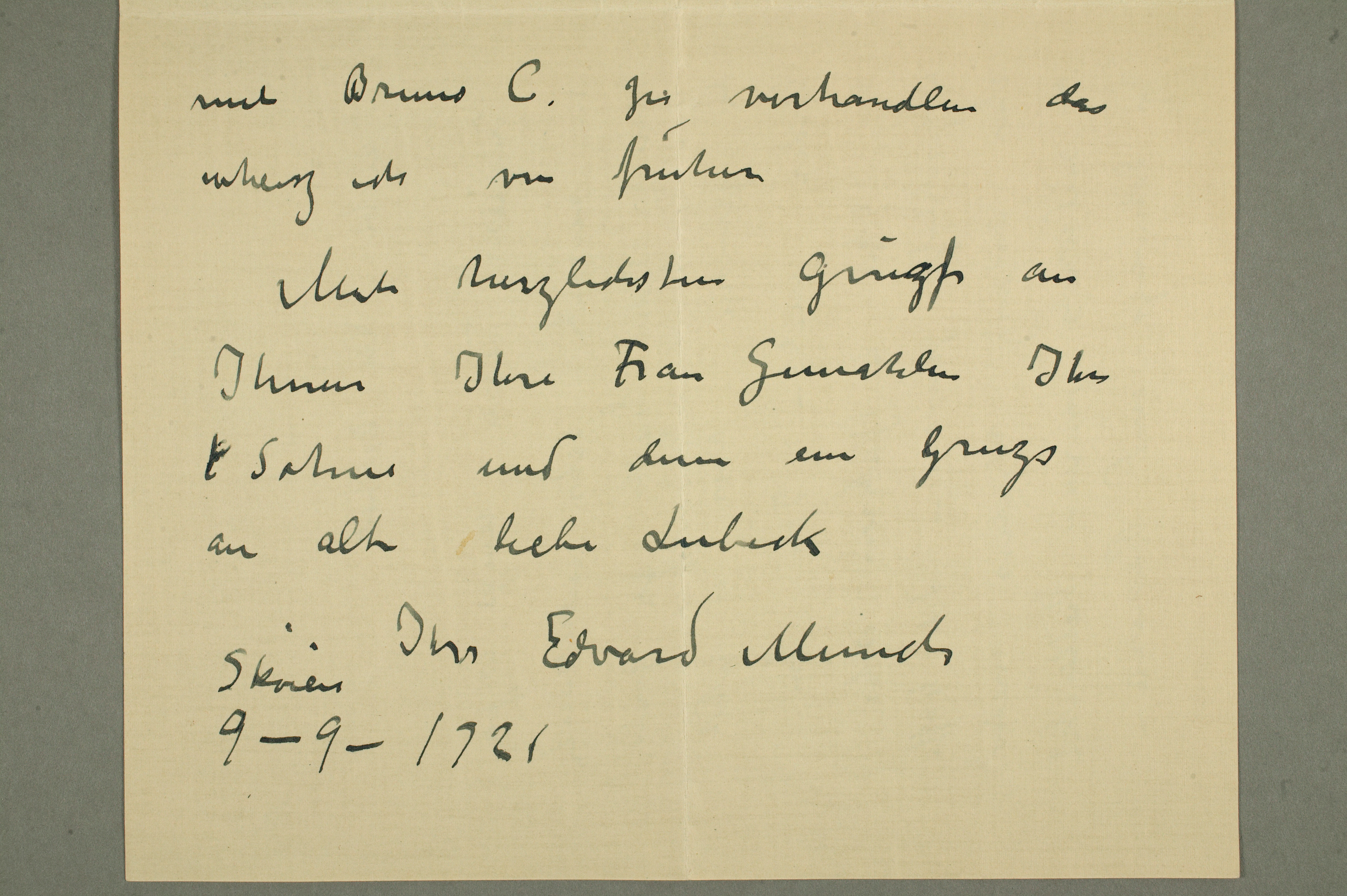 MM N 2317, Munchmuseet. Datert 9.9.1921. Brevutkast til Max Linde.
