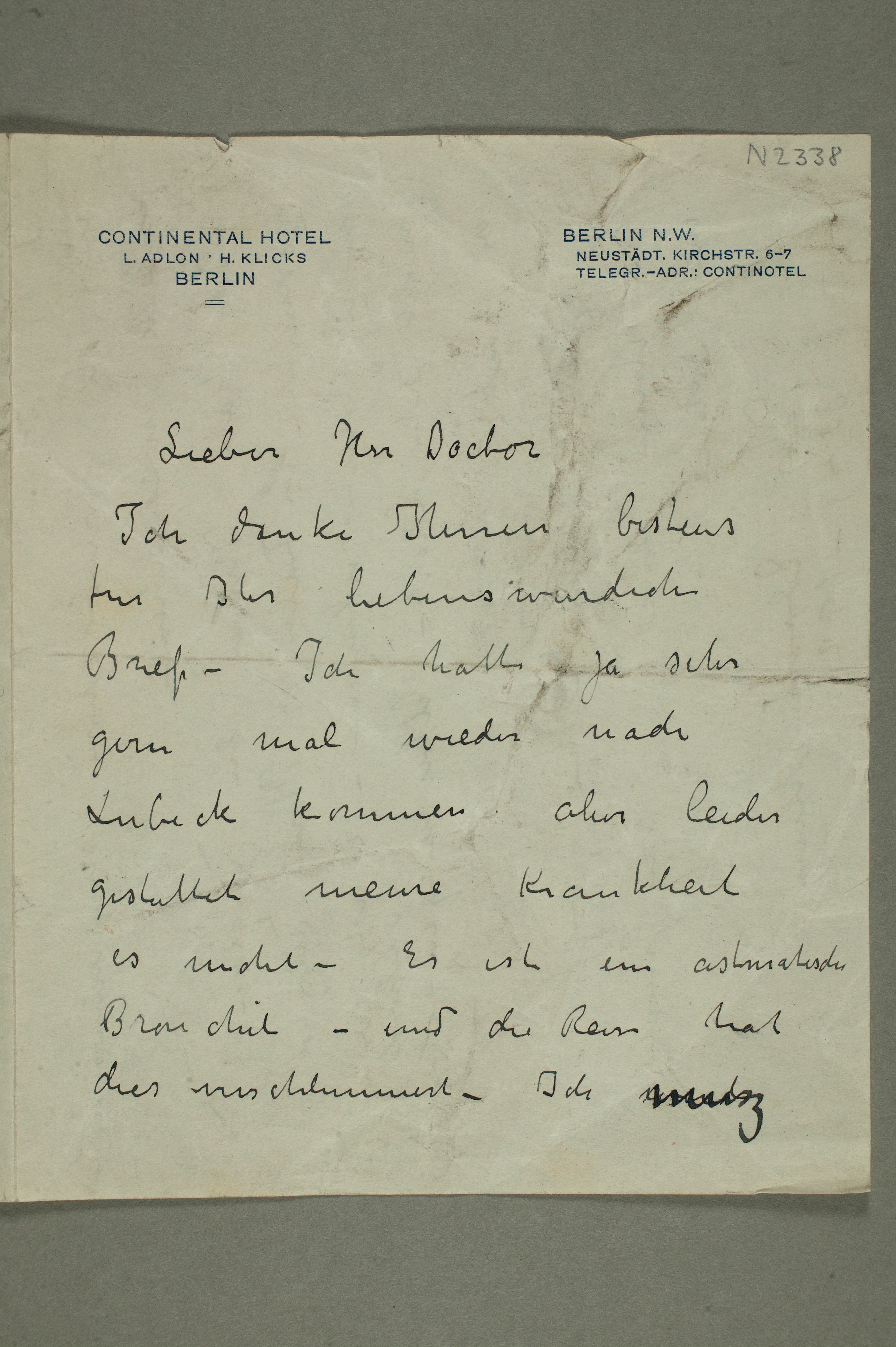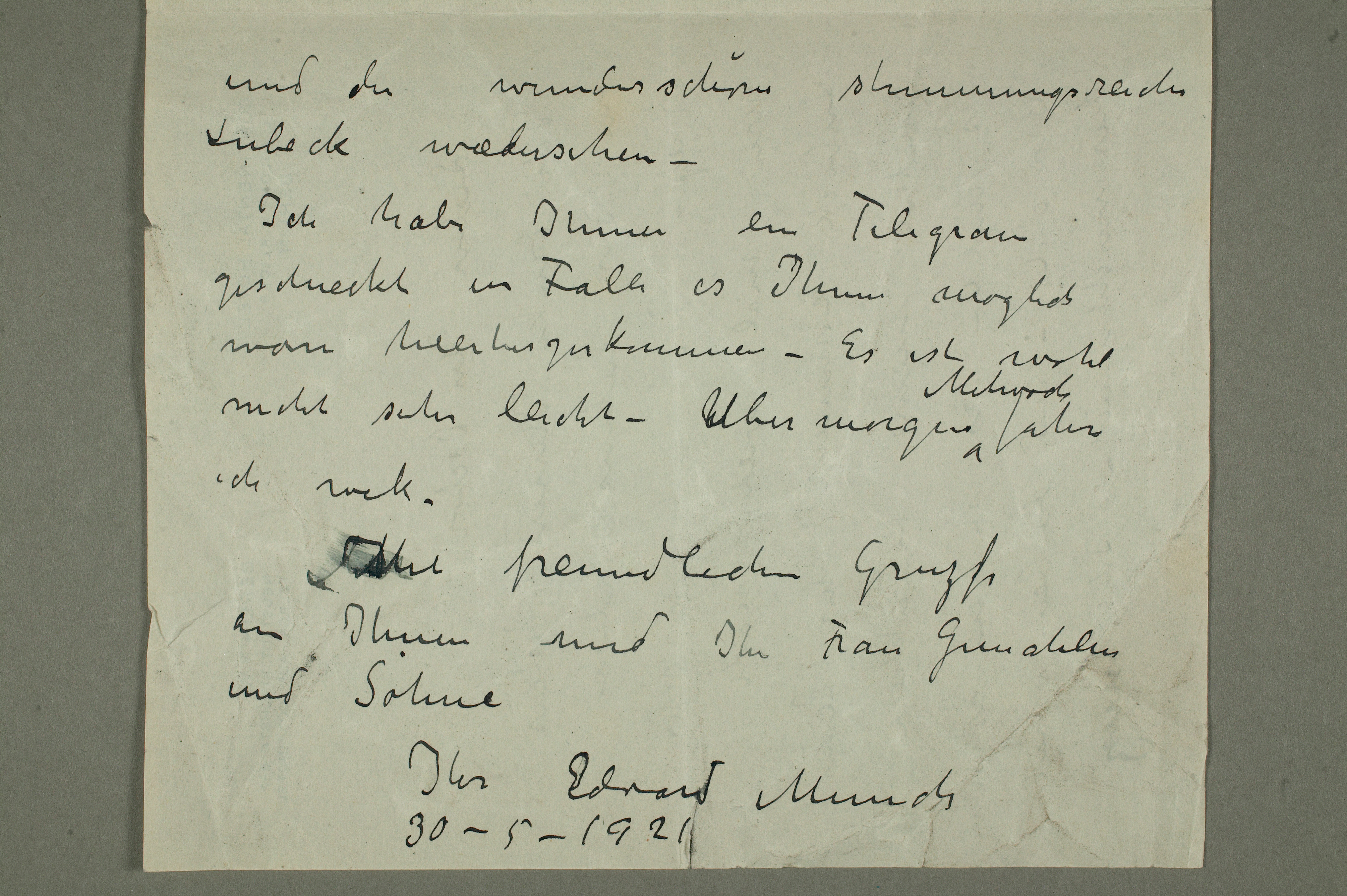 MM N 2338, Munchmuseet. Datert 30.5.1921. Brevutkast til Max Linde.
