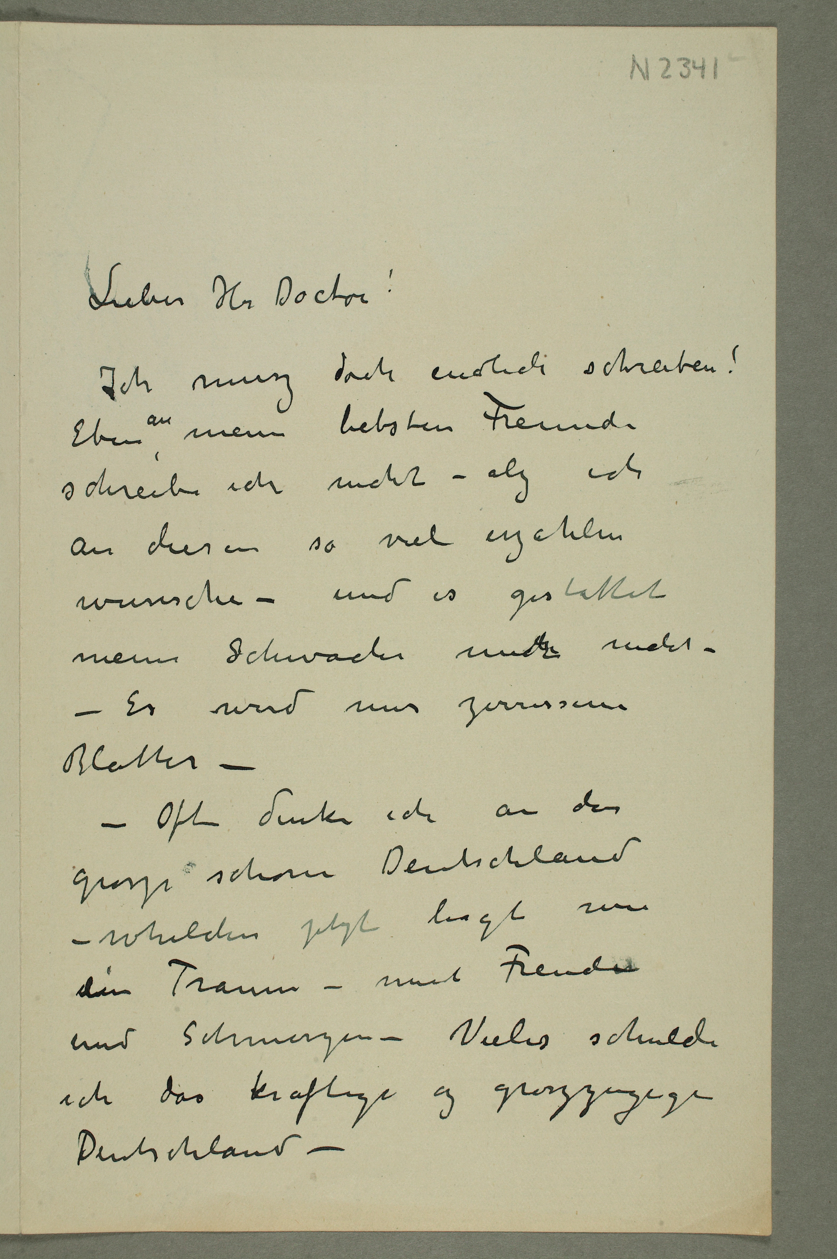 MM N 2341, Munchmuseet. Datert 1909. Brevutkast til Max Linde.