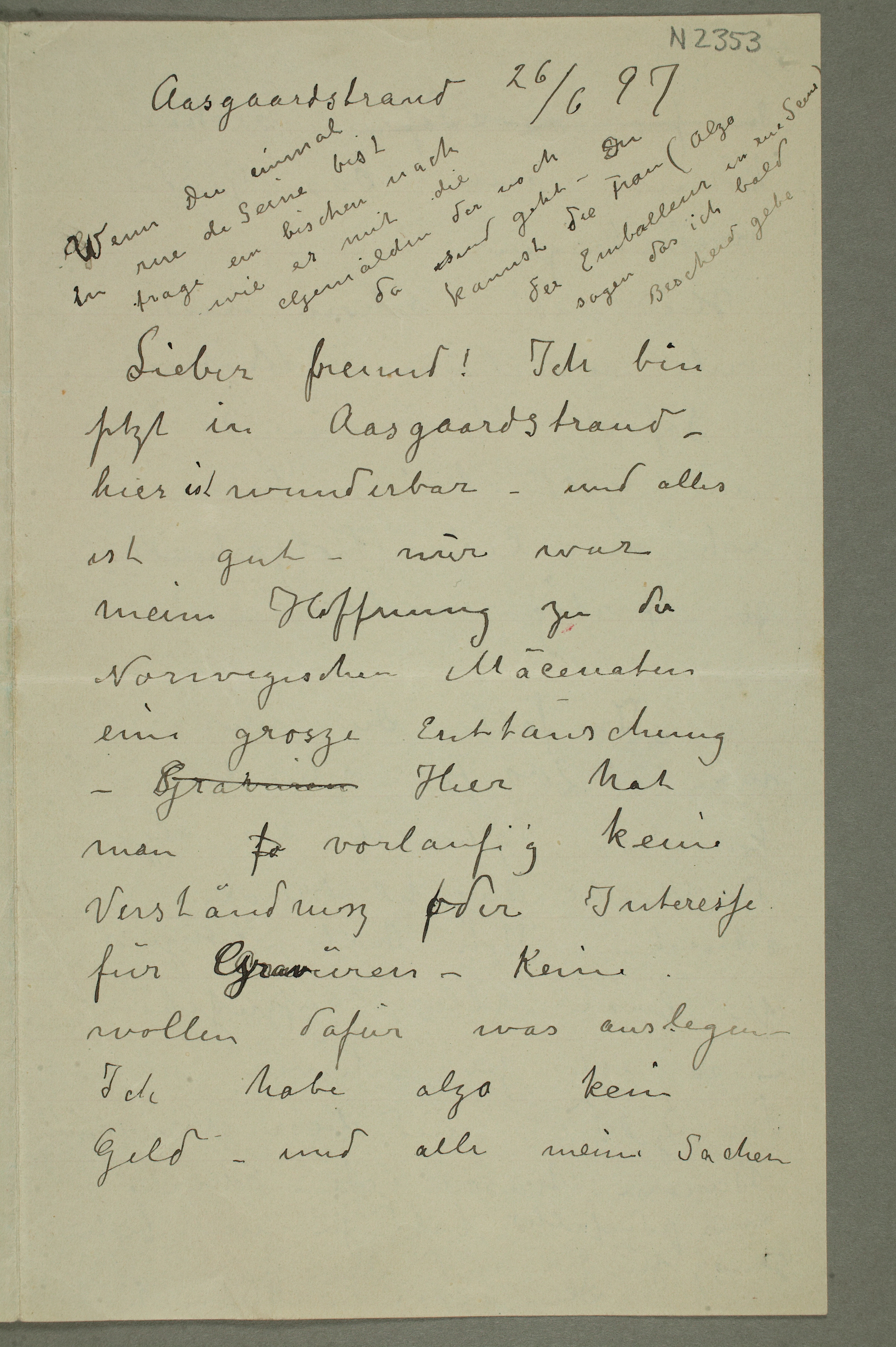 MM N 2353, Munchmuseet. Datert 26.6.1897. Brevutkast til Julius Meier-Graefe.