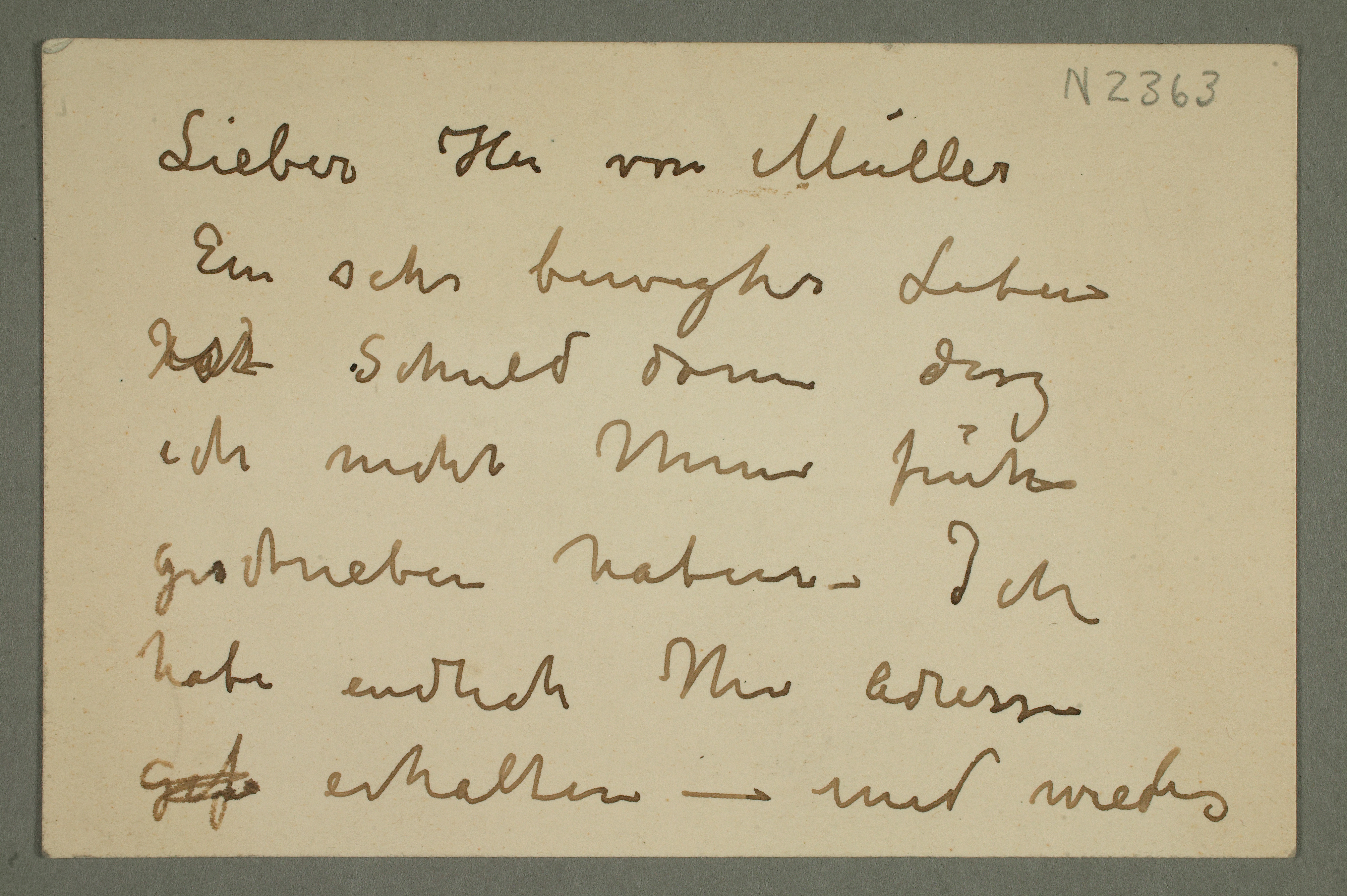 MM N 2363, Munchmuseet. Ikke datert. Brevutkast til Hans von Müller.