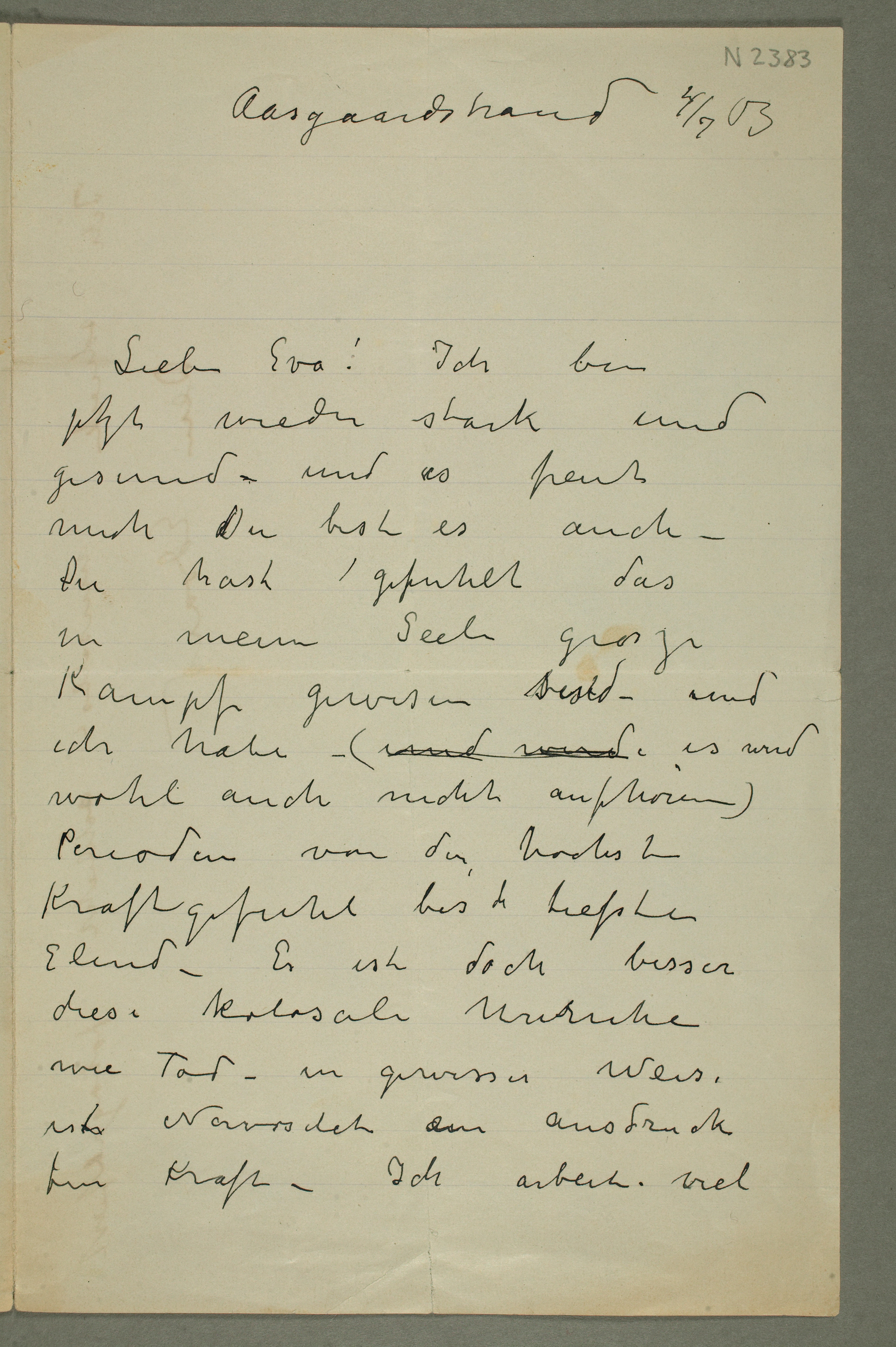 MM N 2383, Munchmuseet. Datert 4.7.1903. Brevutkast til Eva Mudocci.