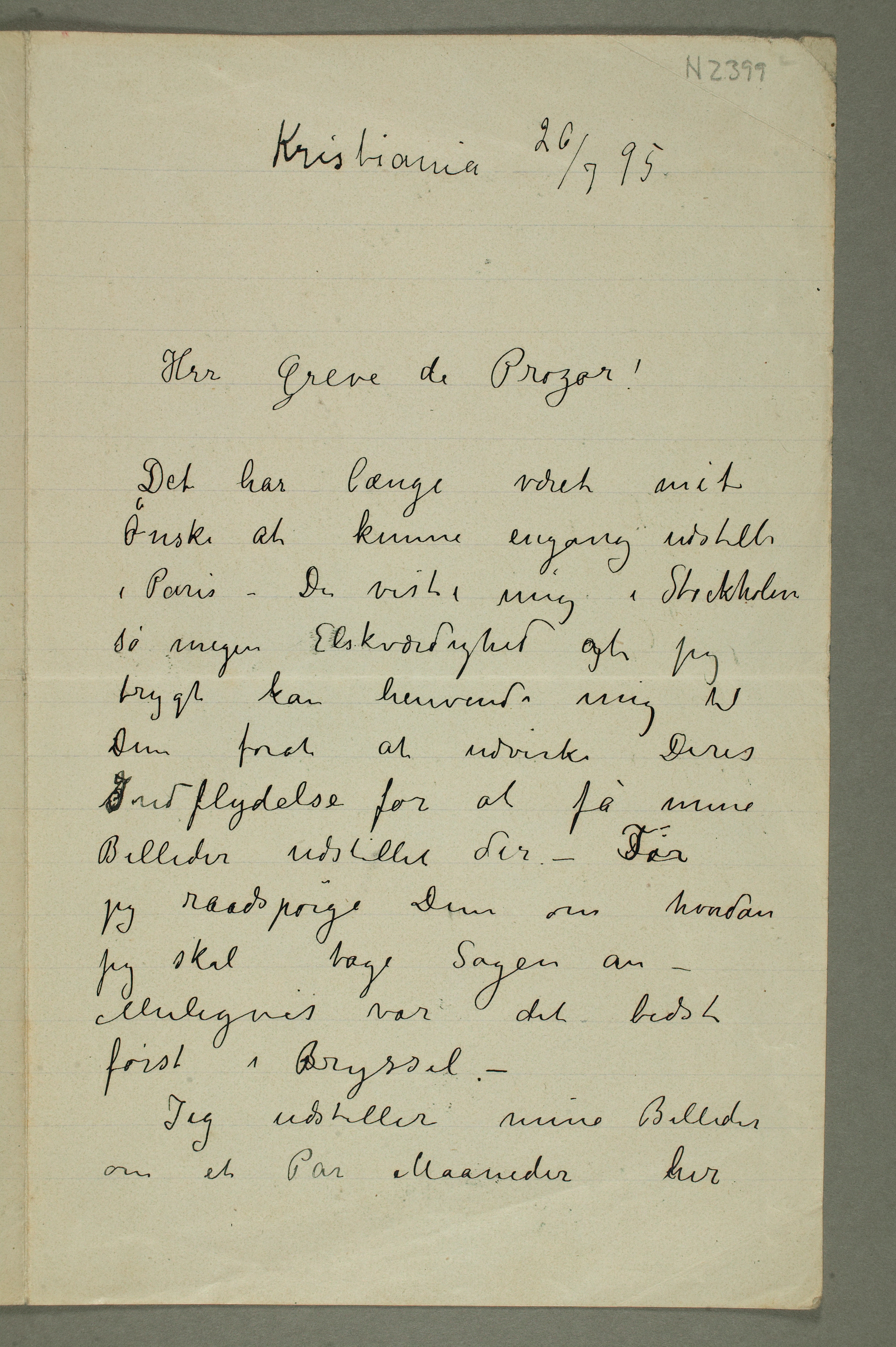 MM N 2399, Munchmuseet. Datert 26.7.1895. Brevutkast til Moritz (Maurice) de Prozor.