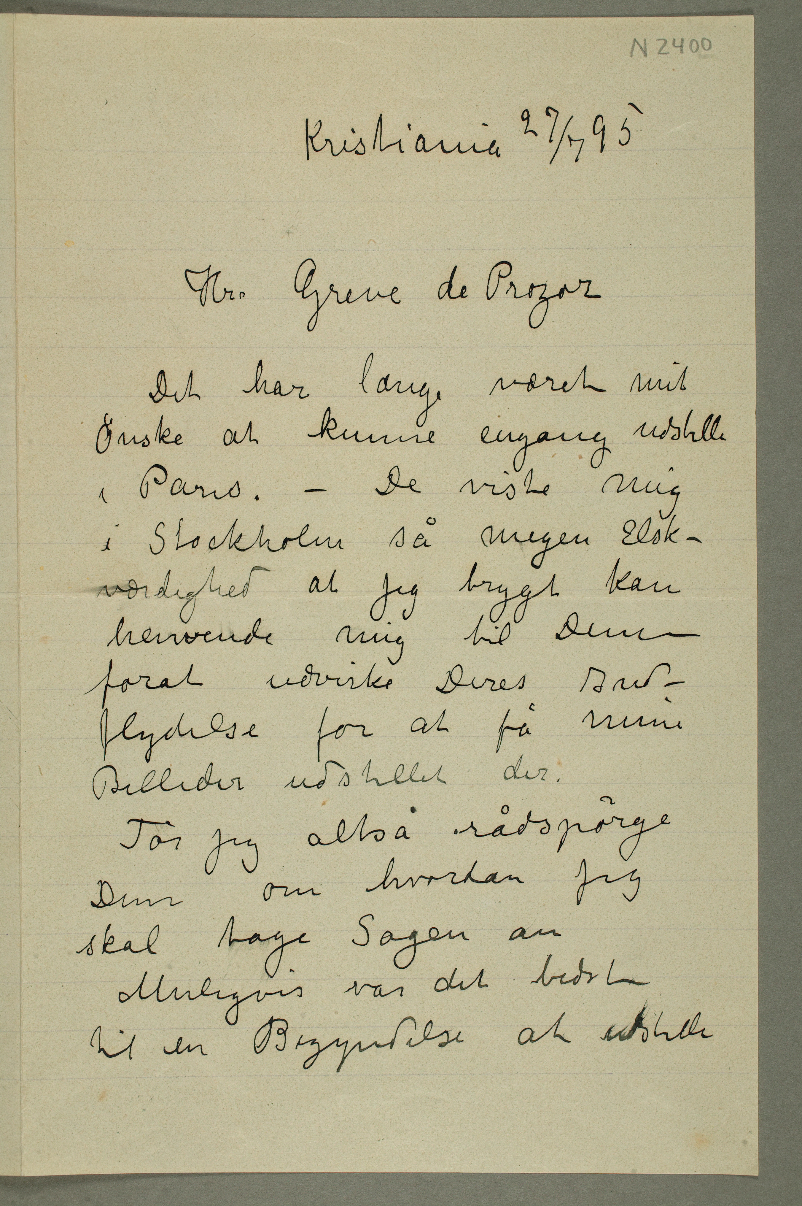 MM N 2400, Munchmuseet. Datert 27.7.1895. Brevutkast til Moritz (Maurice) de Prozor.