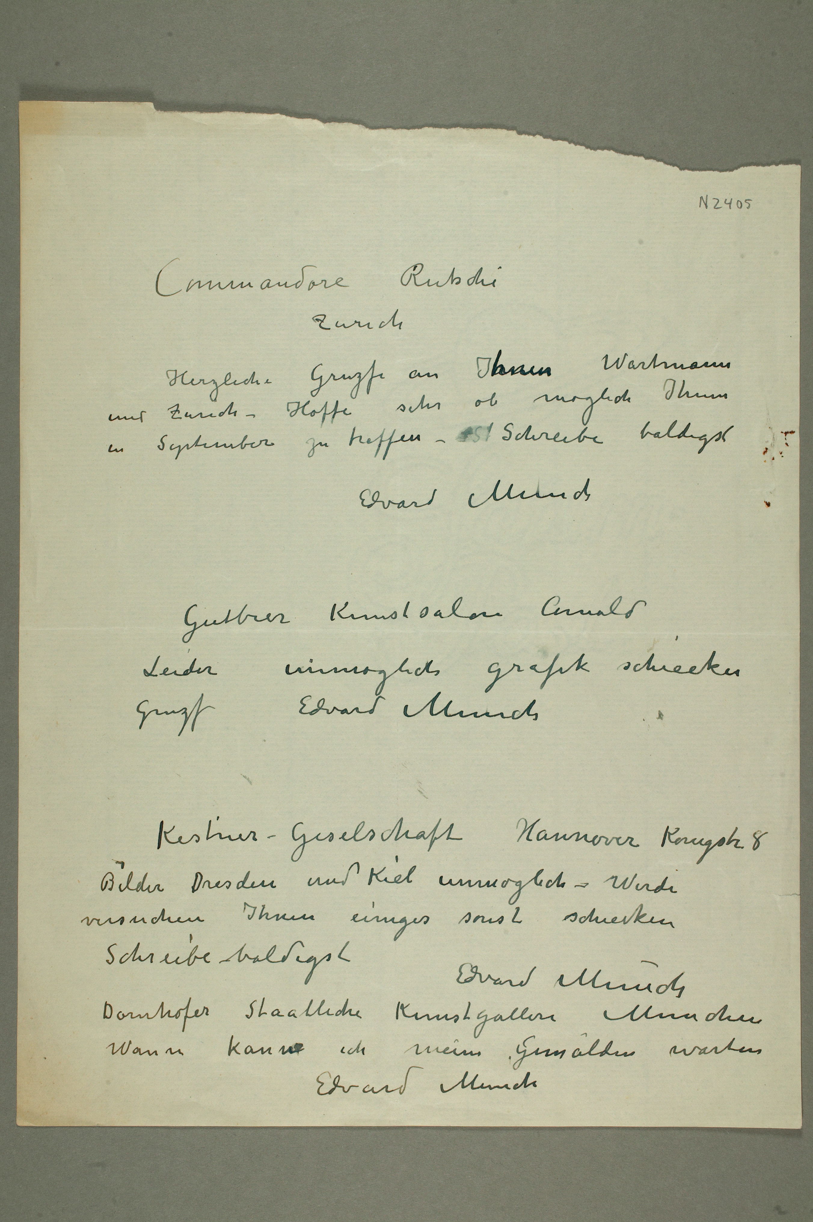 MM N 2405, Munchmuseet. Ikke datert. Brevutkast til Alfred Rütschi.