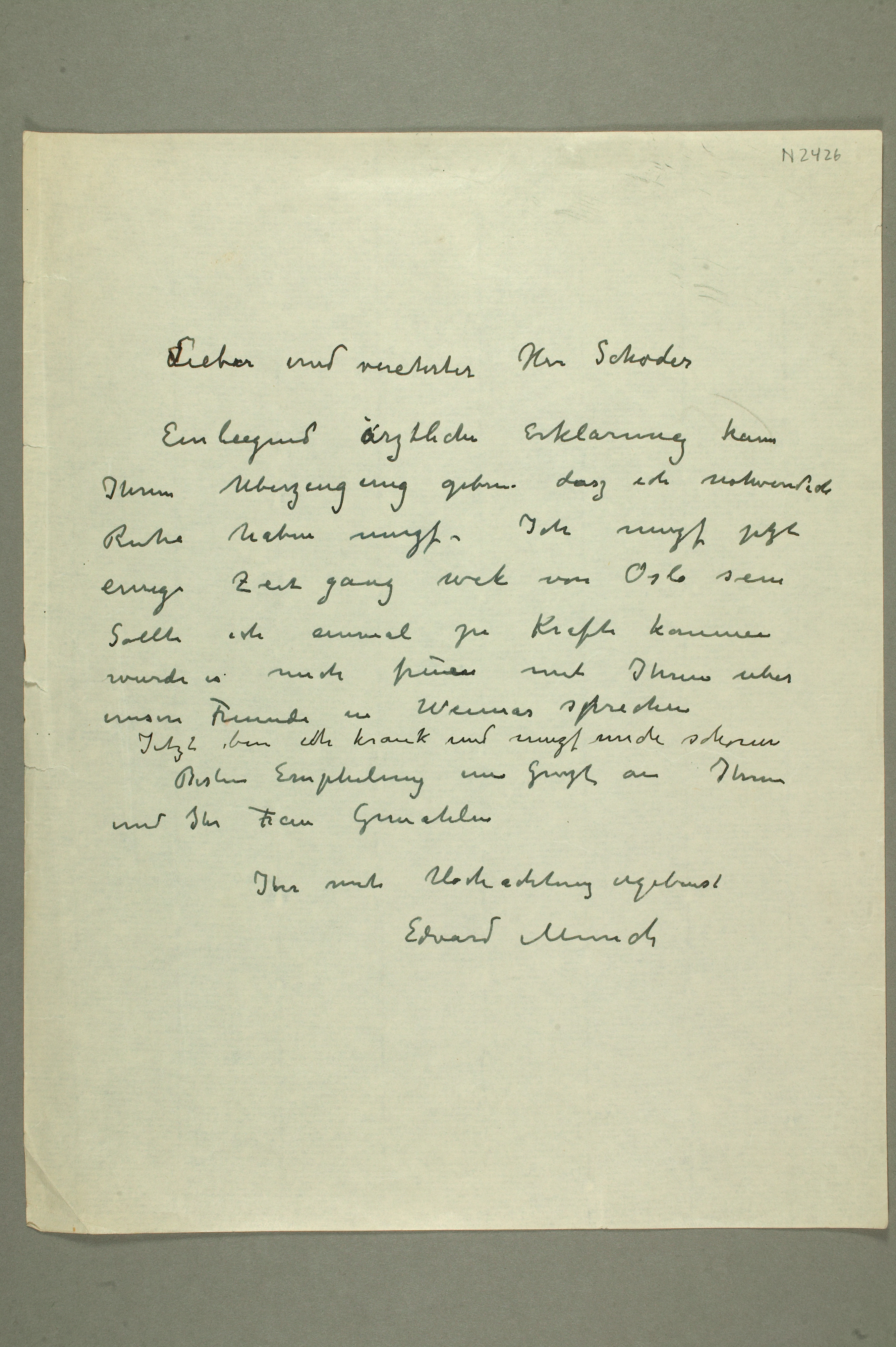 MM N 2426, Munchmuseet. Ikke datert. Brevutkast til Thilo Schoder.