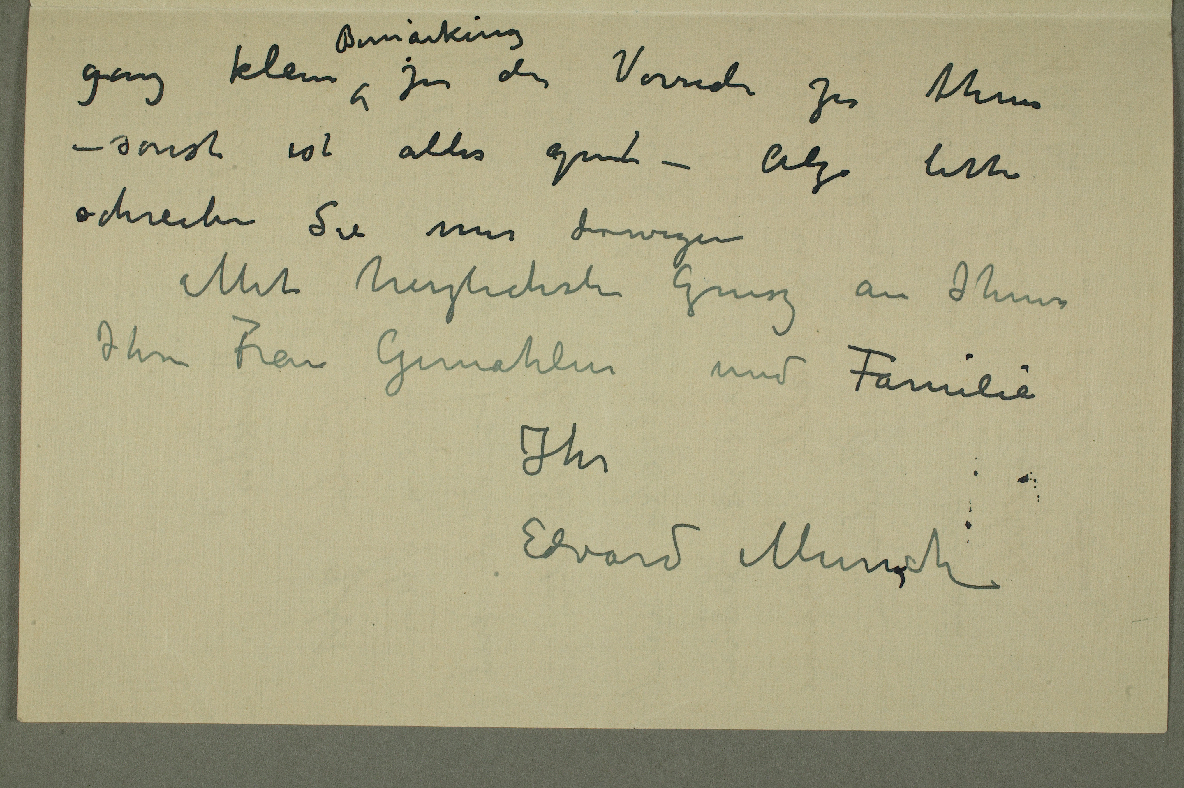 MM N 2439, Munchmuseet. Datert 1906. Brevutkast til Gustav Schiefler.