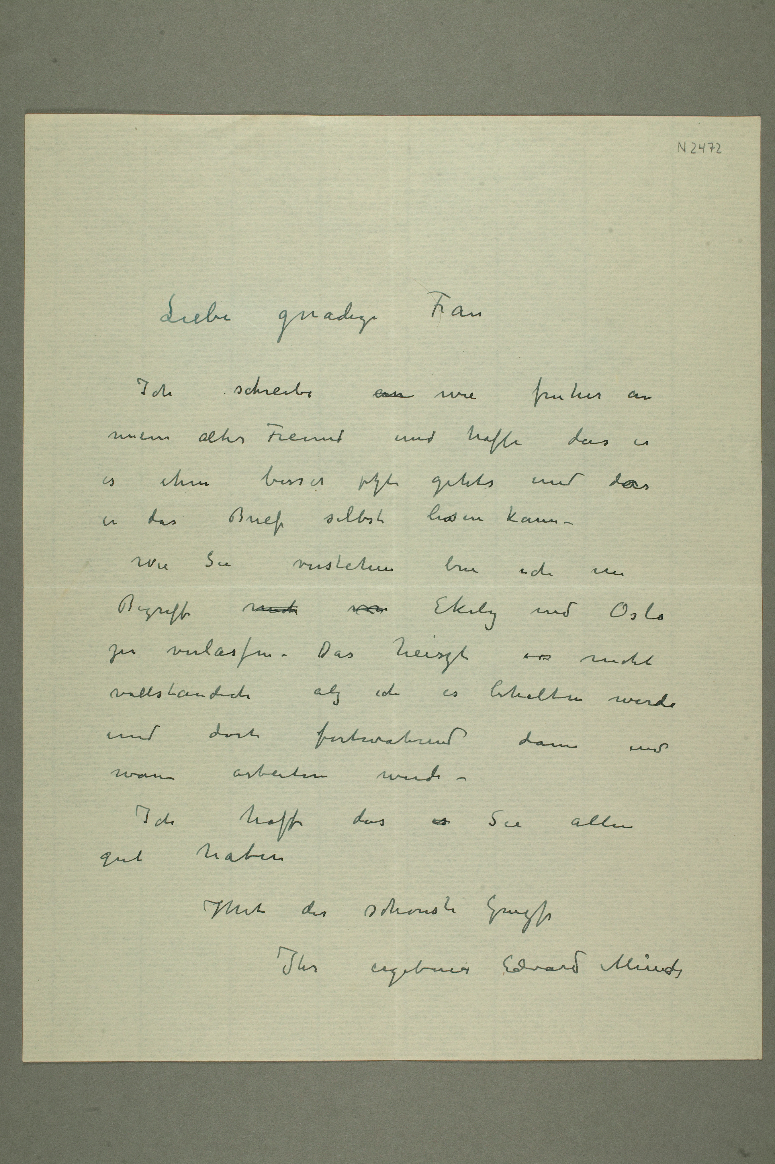 MM N 2472, Munchmuseet. Ikke datert. Brevutkast til Luise Schiefler.
