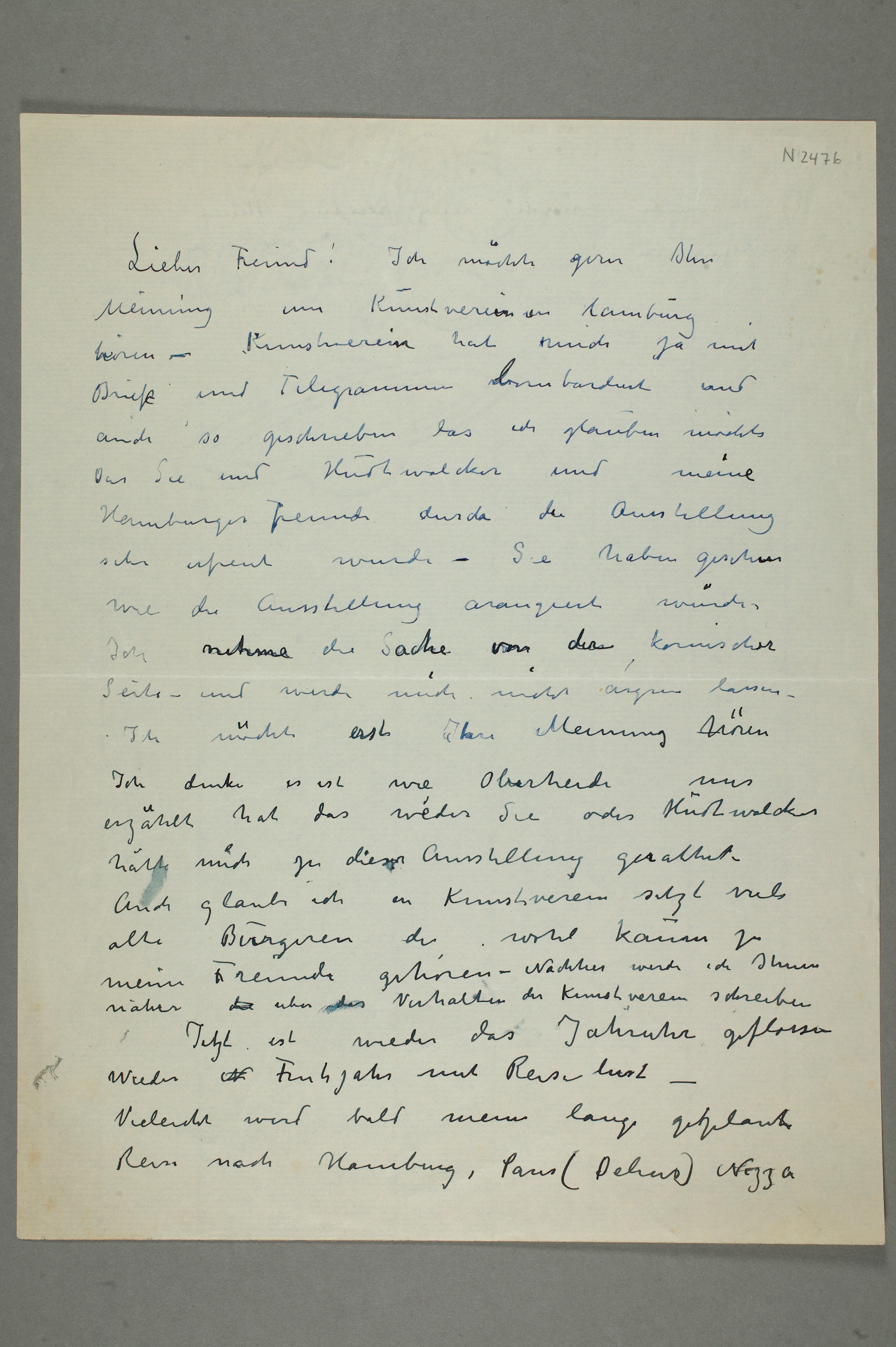 MM N 2476, Munchmuseet. Ikke datert. Brevutkast til Gustav Schiefler.