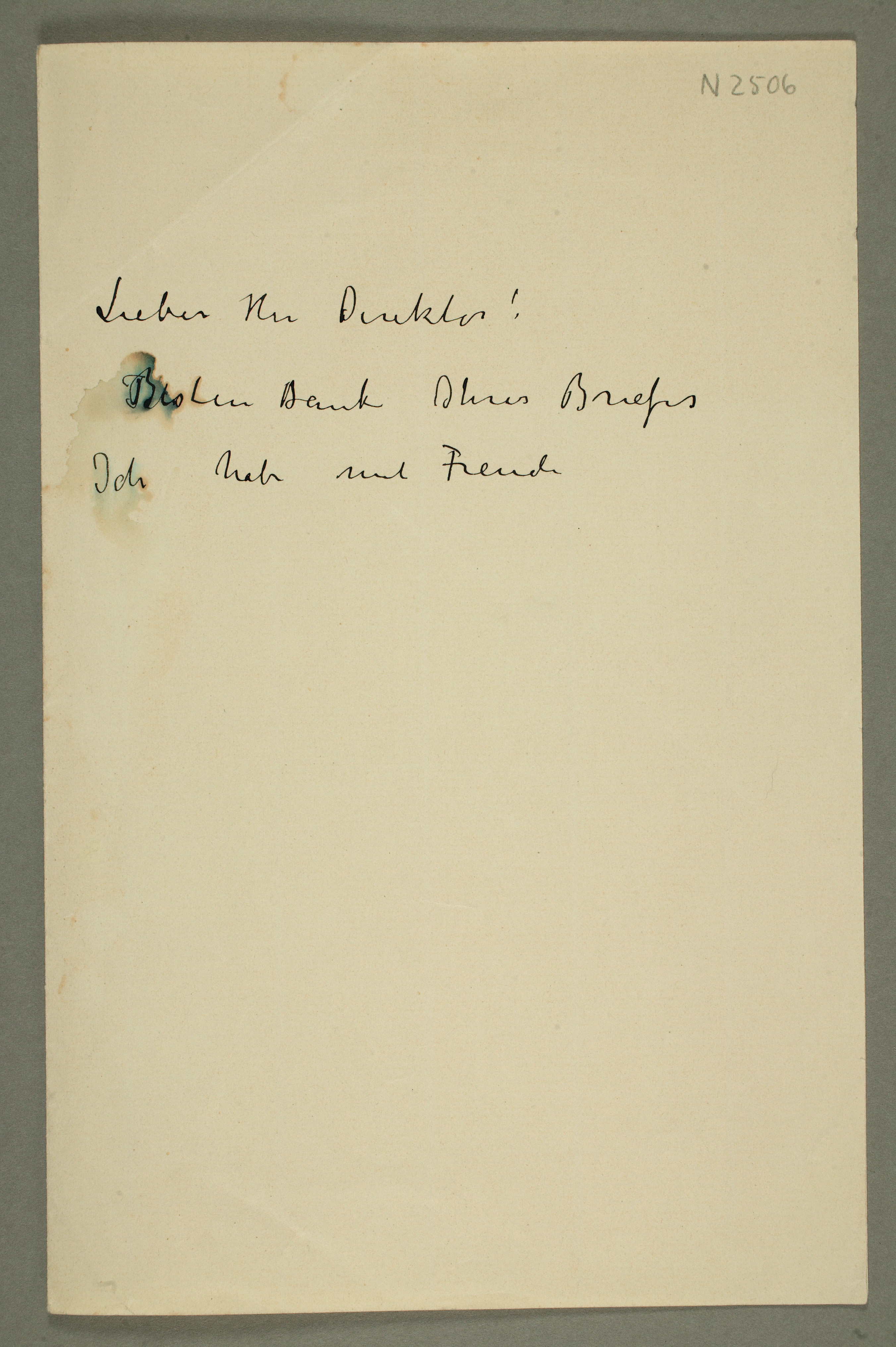 MM N 2506, Munchmuseet. Ikke datert. Brevutkast til Gustav Schiefler.
