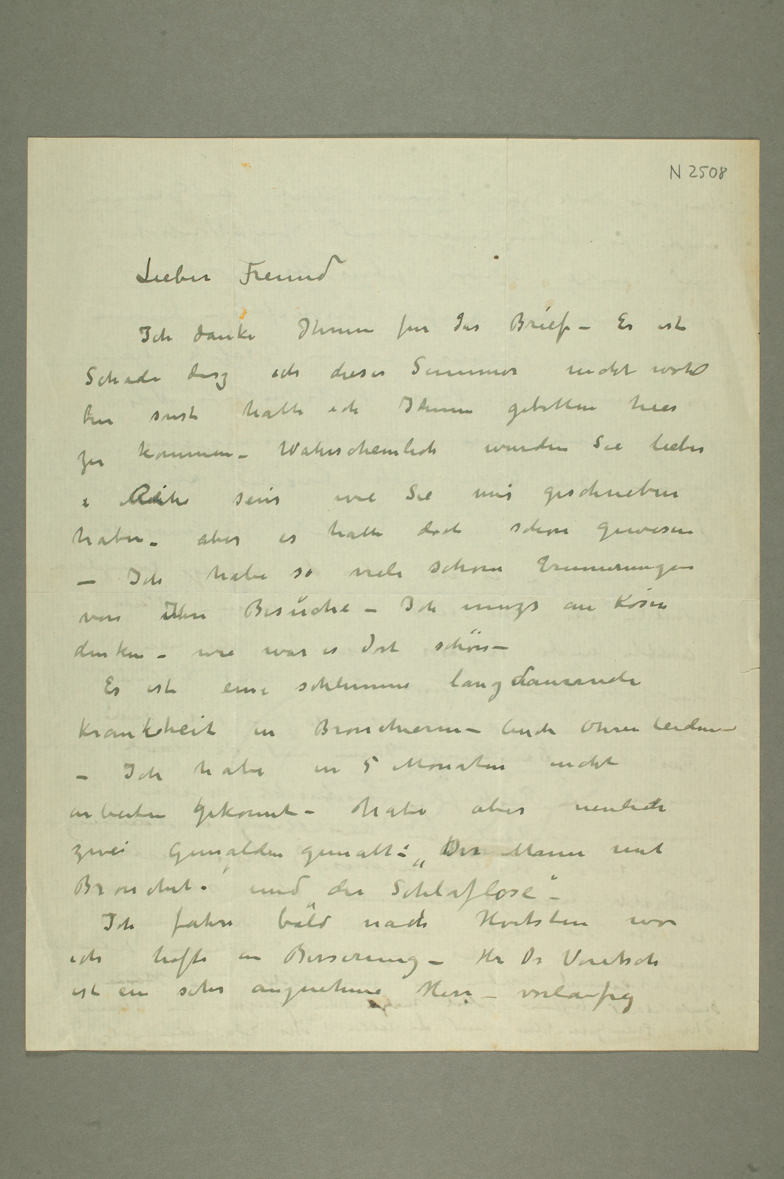 MM N 2508, Munchmuseet. Datert 1920. Brevutkast til Gustav Schiefler.