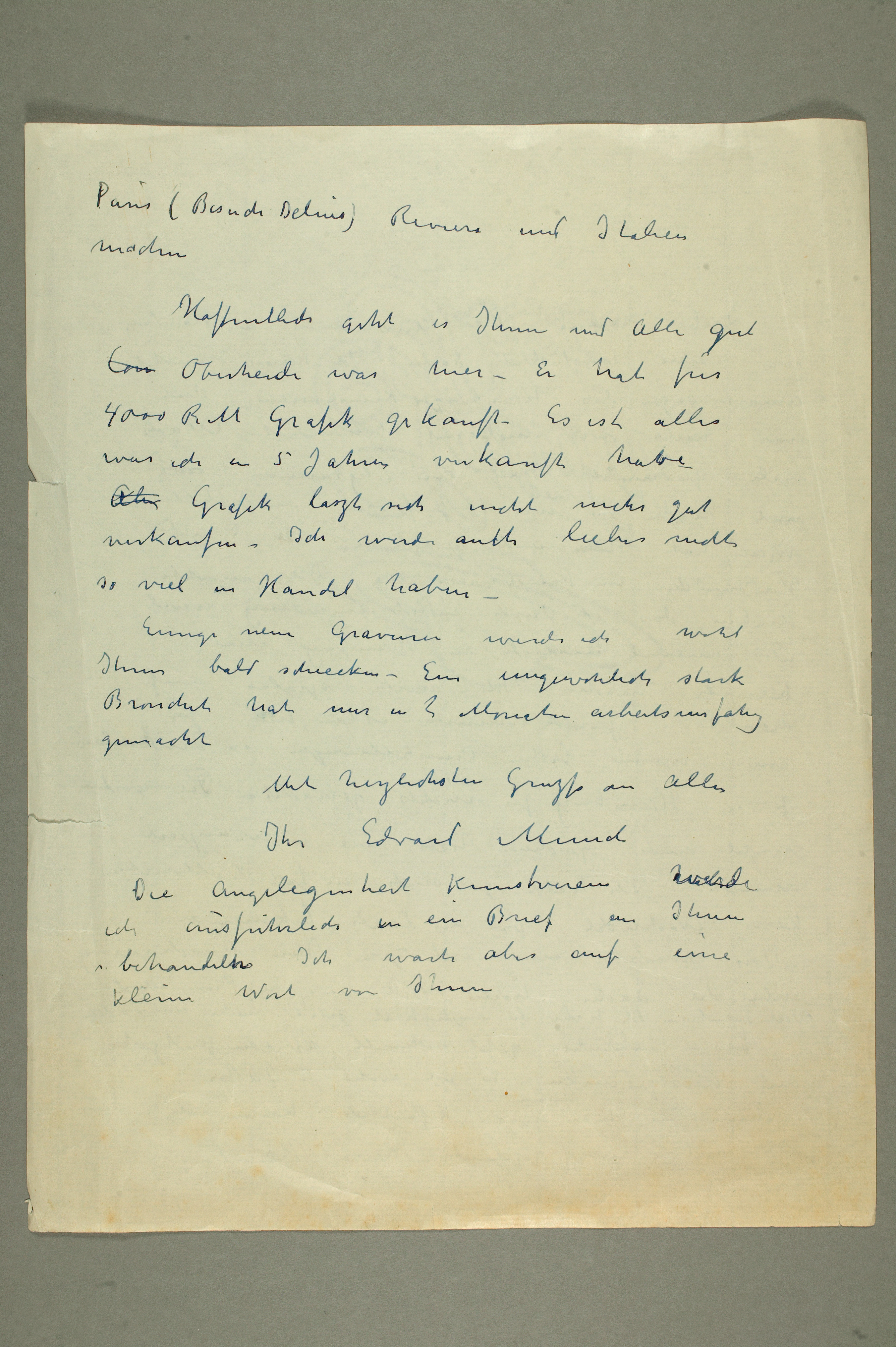 MM N 2513, Munchmuseet. Ikke datert. Brevutkast til Gustav Schiefler.