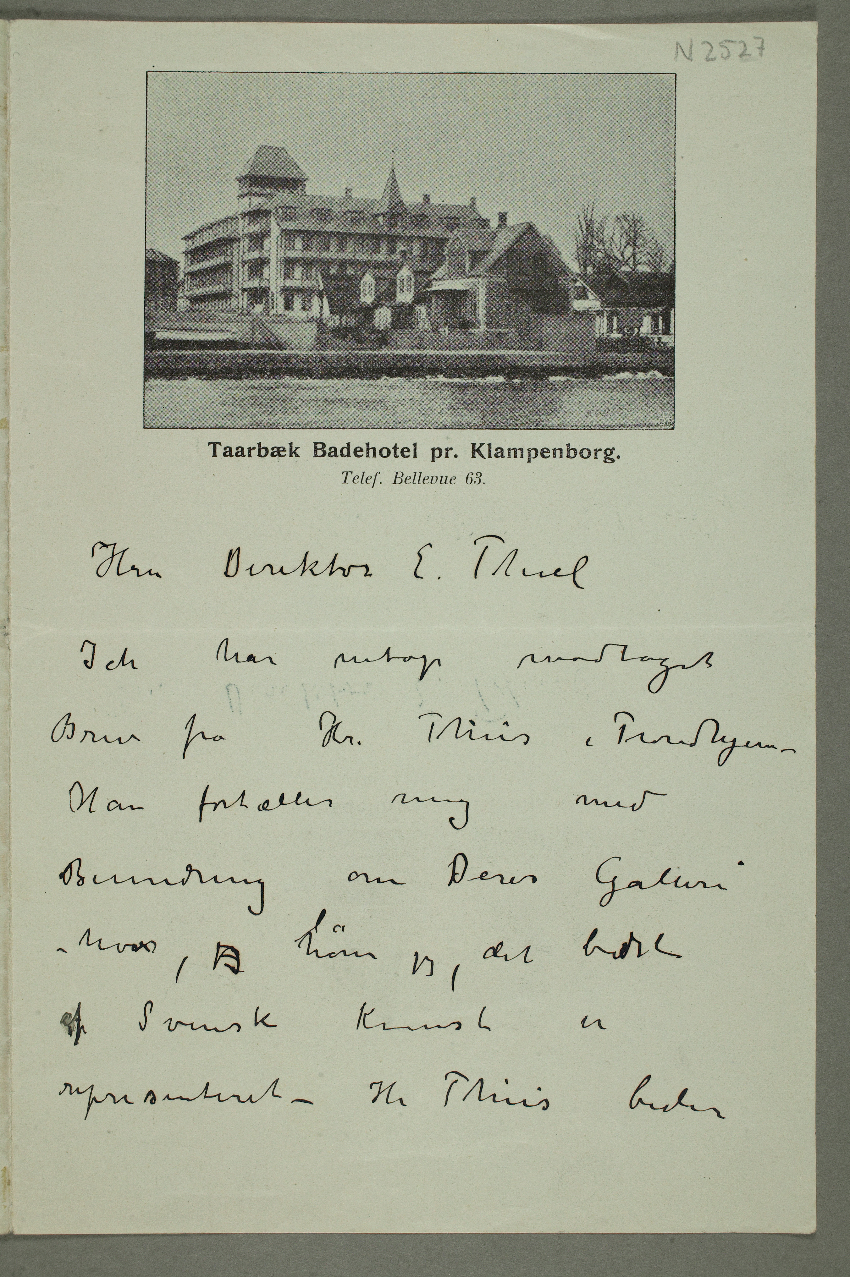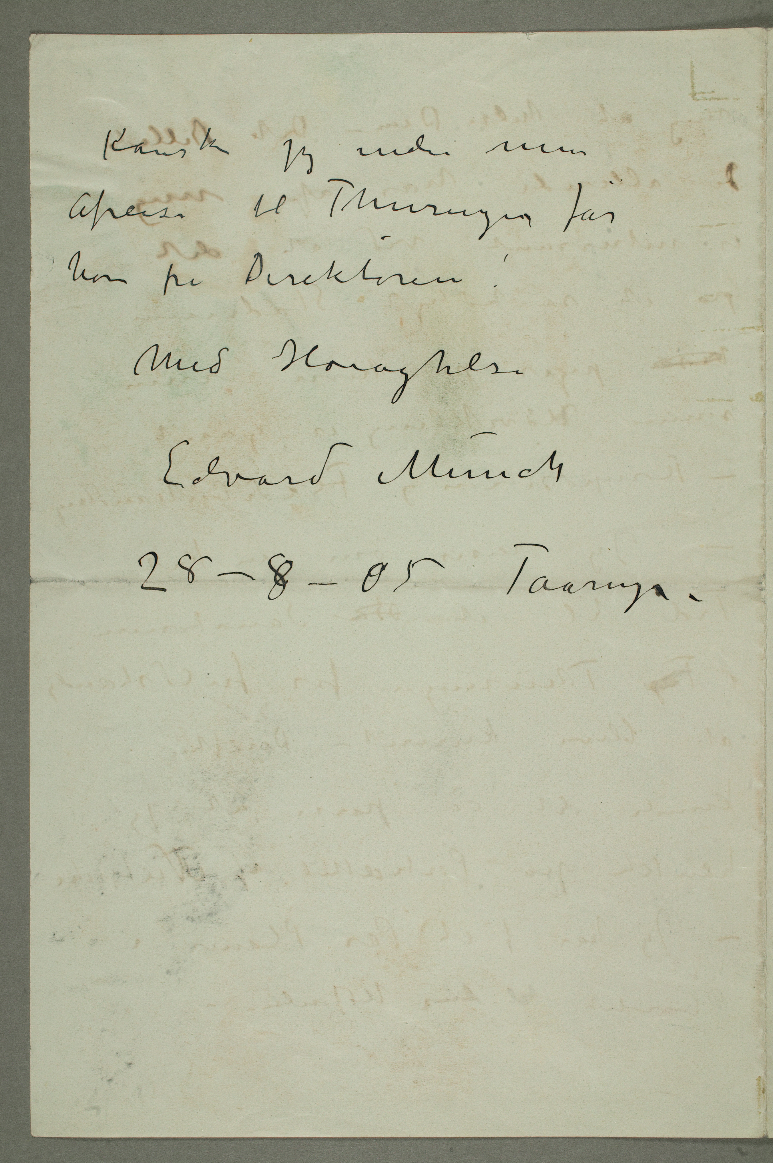 MM N 2527, Munchmuseet. Datert 28.8.1905. Brevutkast til Ernest Thiel.