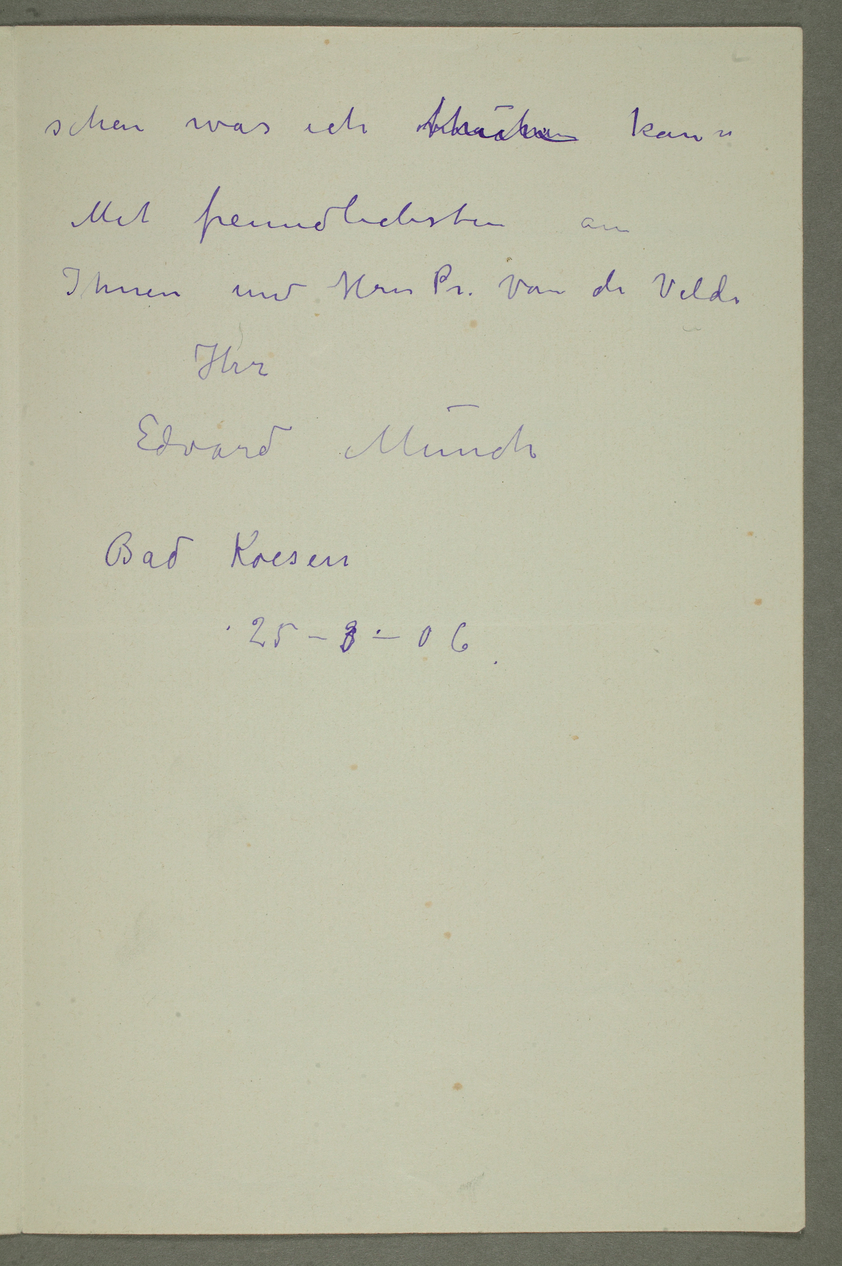 MM N 2532, Munchmuseet. Datert 25.3.1906. Brevutkast til Maria van de Velde.