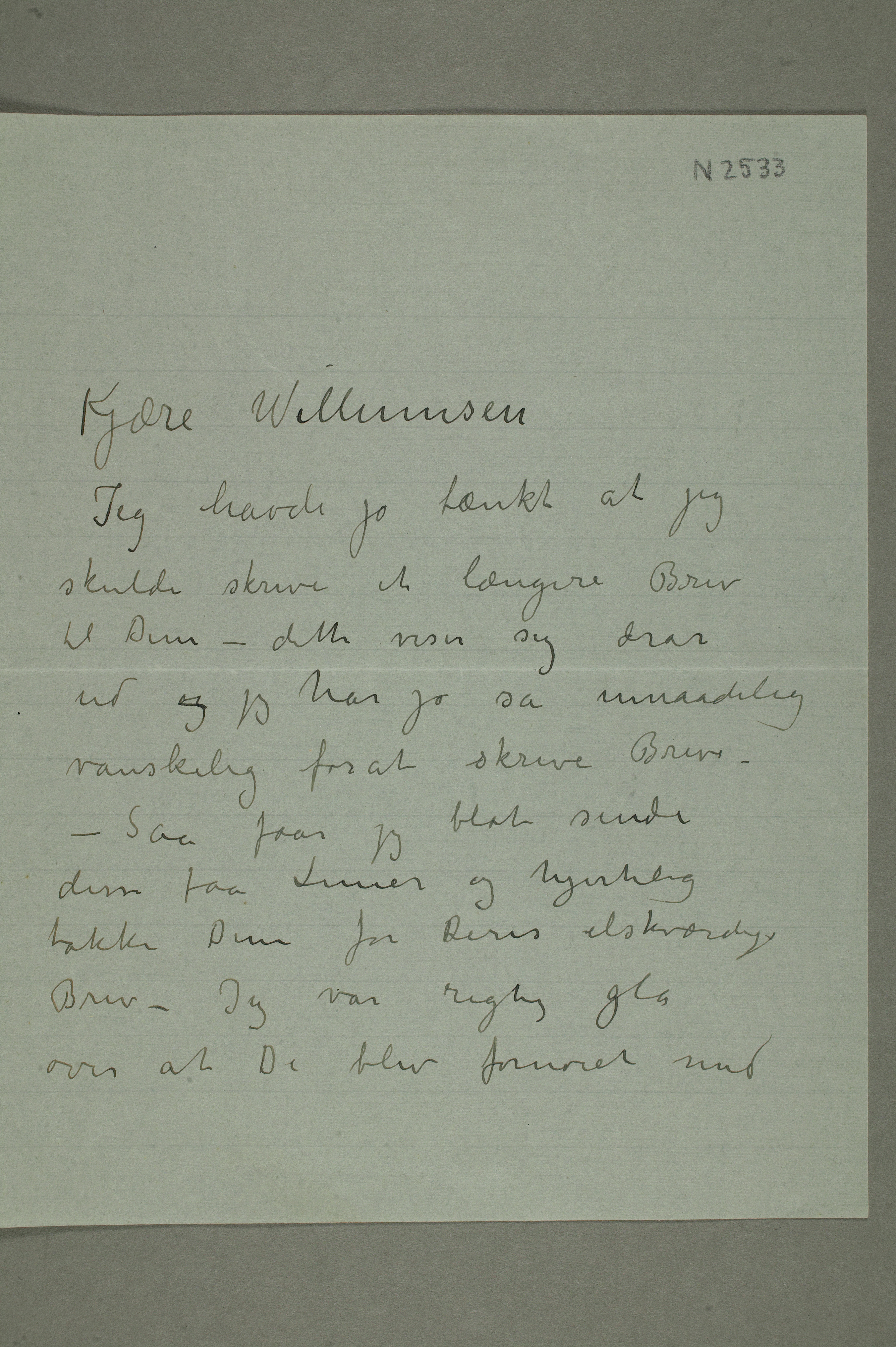 MM N 2533, Munchmuseet. Ikke datert. Brevutkast til Jens Willumsen.