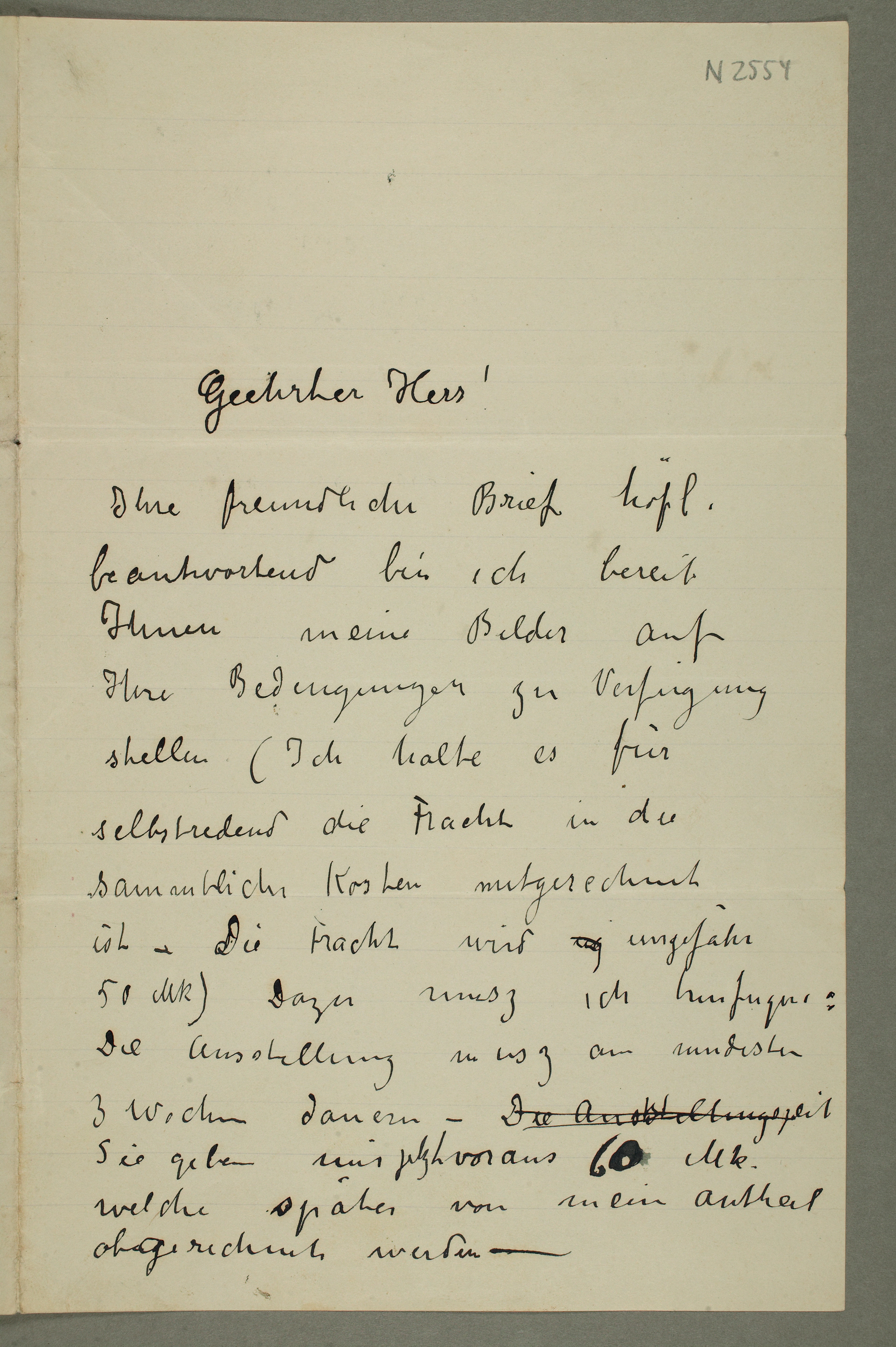 MM N 2554, Munchmuseet. Ikke datert. Brevutkast til Uidentifisert mann.