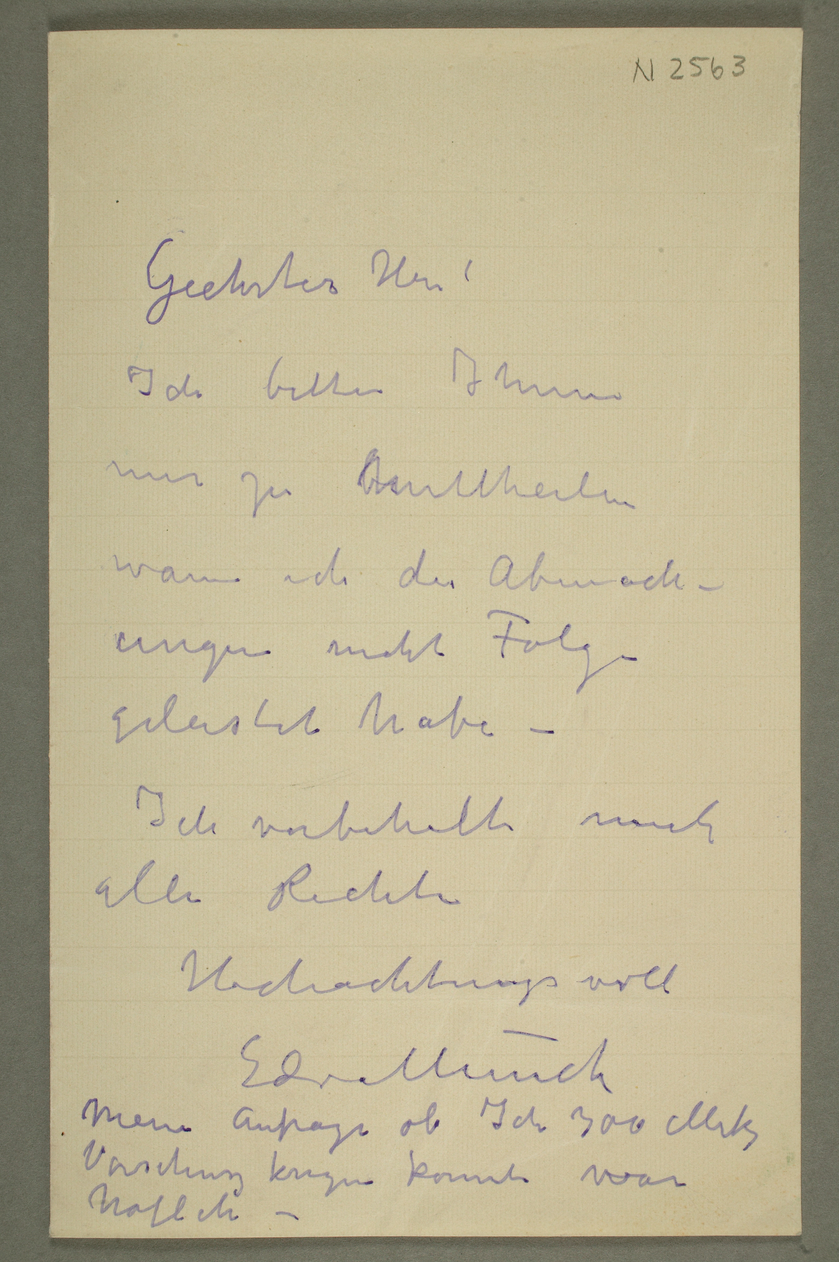 MM N 2563, Munchmuseet. Datert 1906. Brevutkast til Uidentifisert mann.