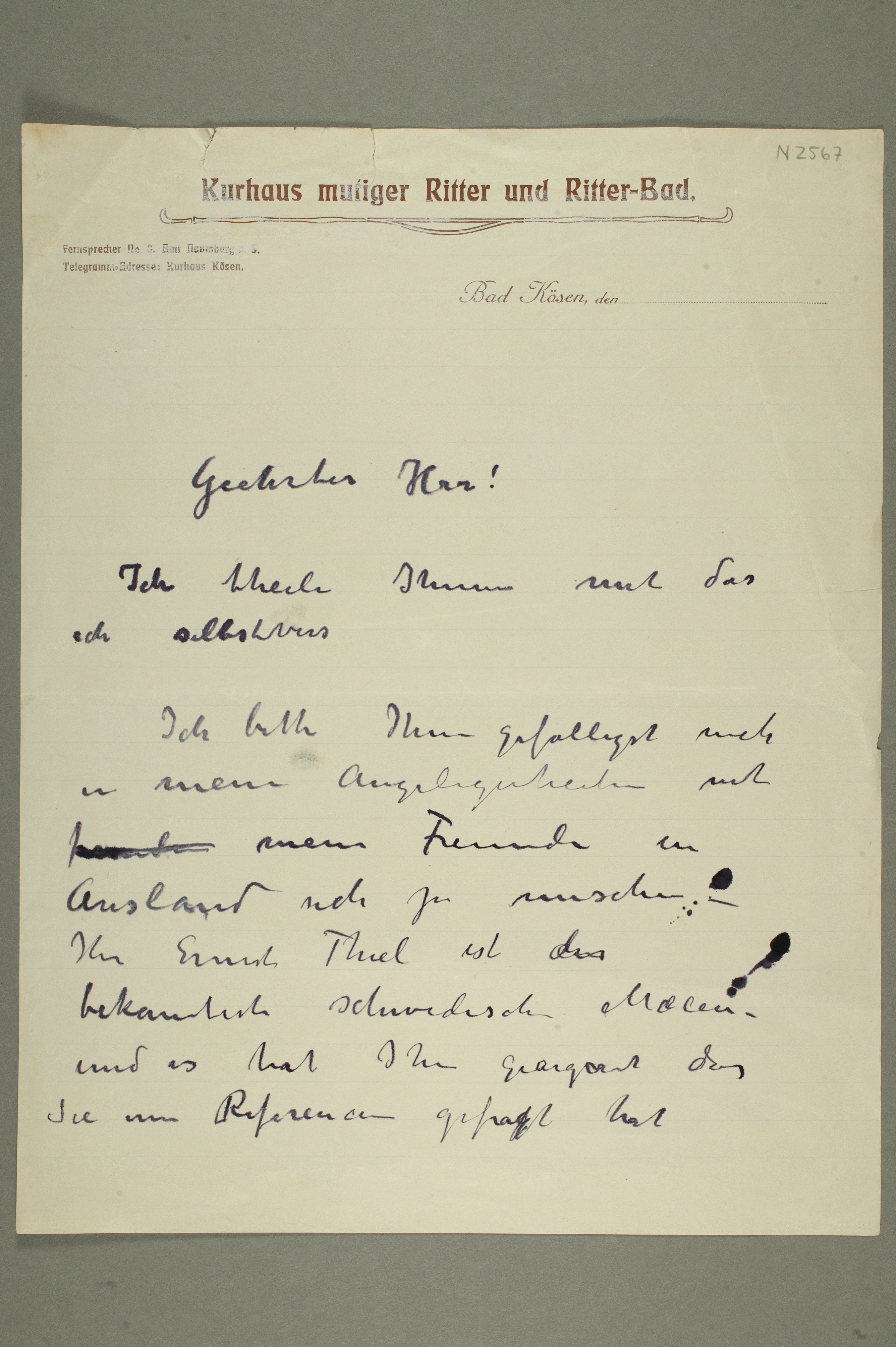 MM N 2567, Munchmuseet. Datert 1906. Brevutkast til Uidentifisert mann.
