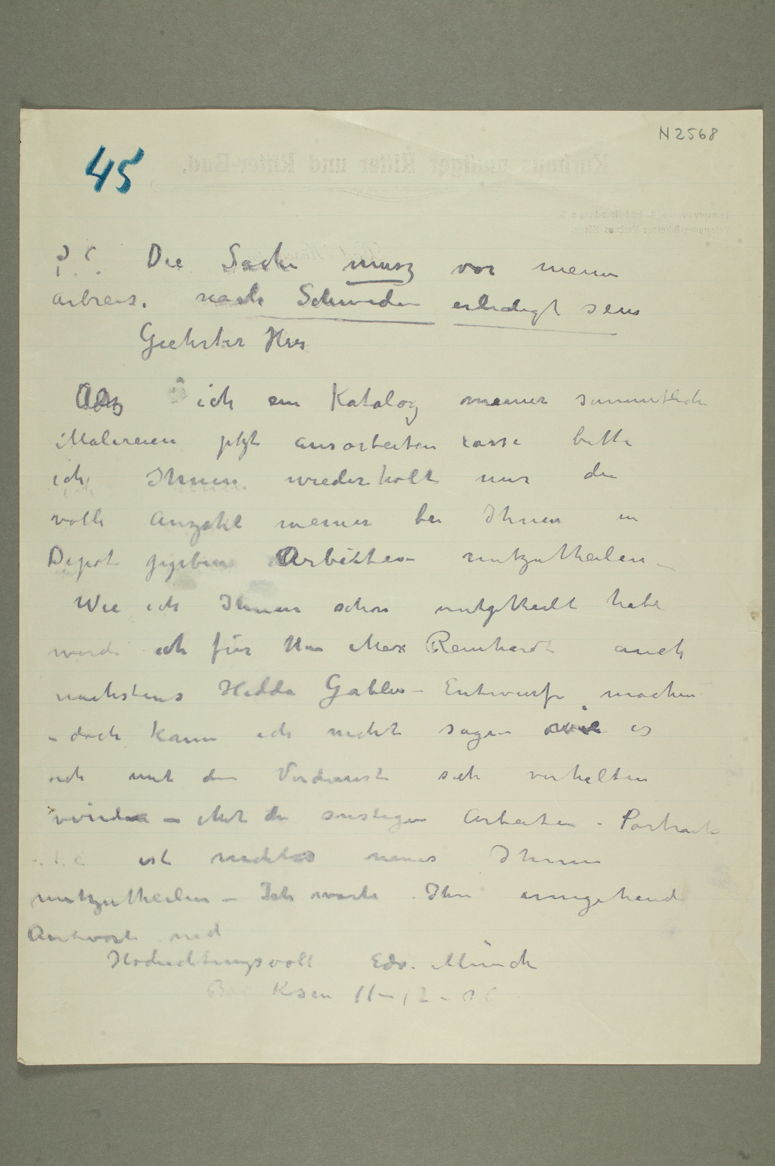 MM N 2568, Munchmuseet. Datert 11.12.1906. Brevutkast til Uidentifisert mann.
