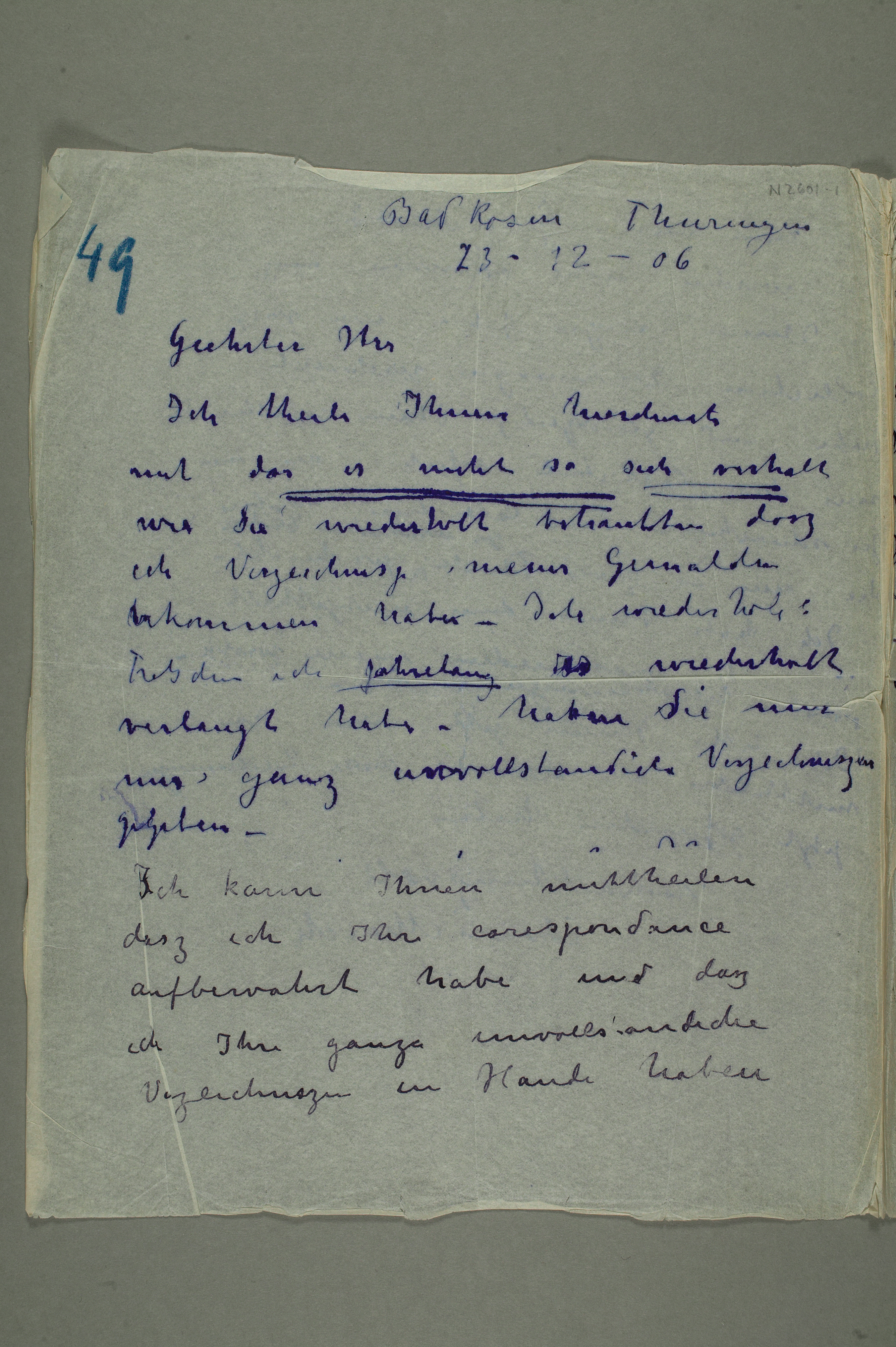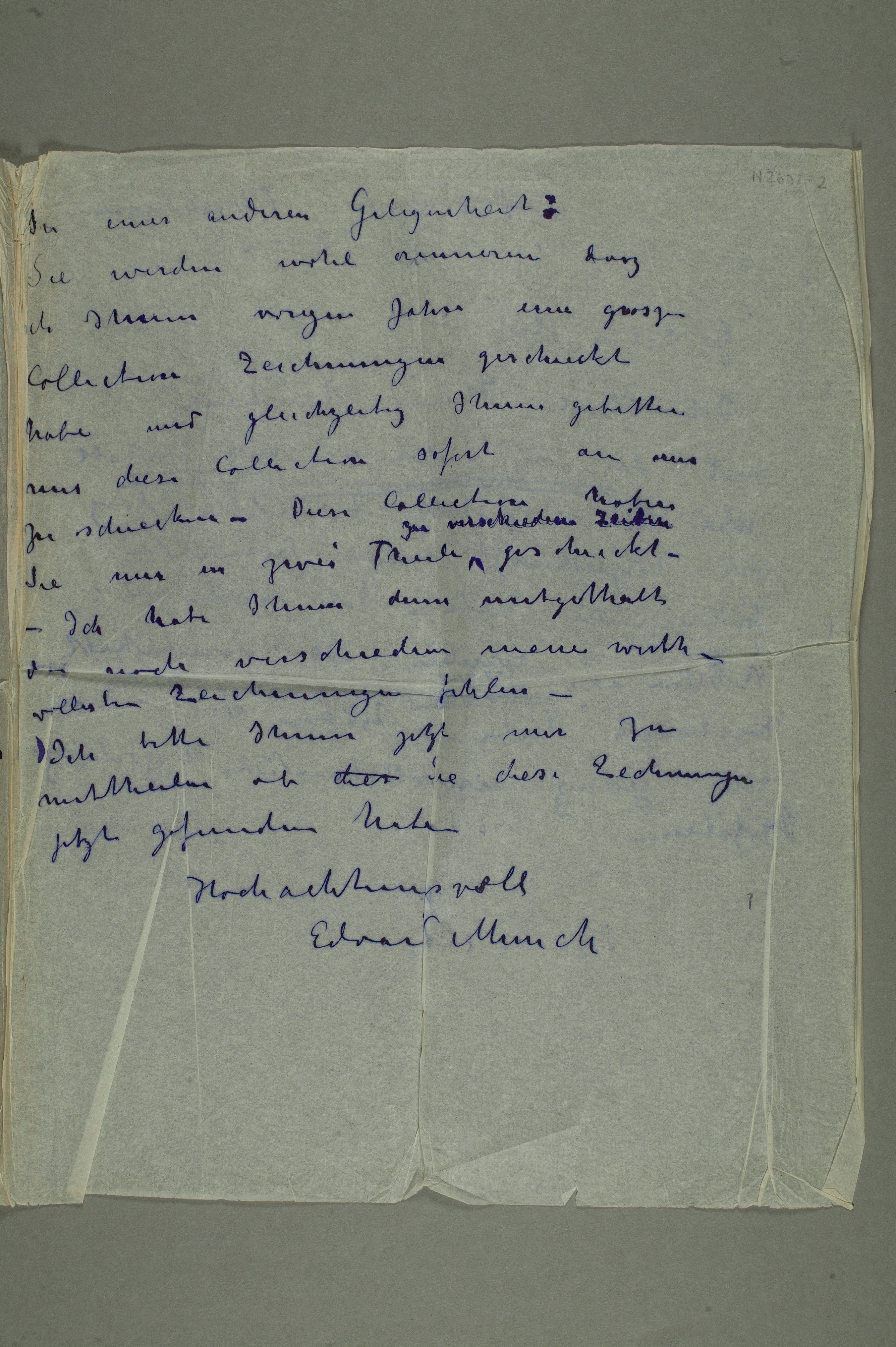 MM N 2601, Munchmuseet. Datert 23.12.1906. Brevutkast til Uidentifisert mann.