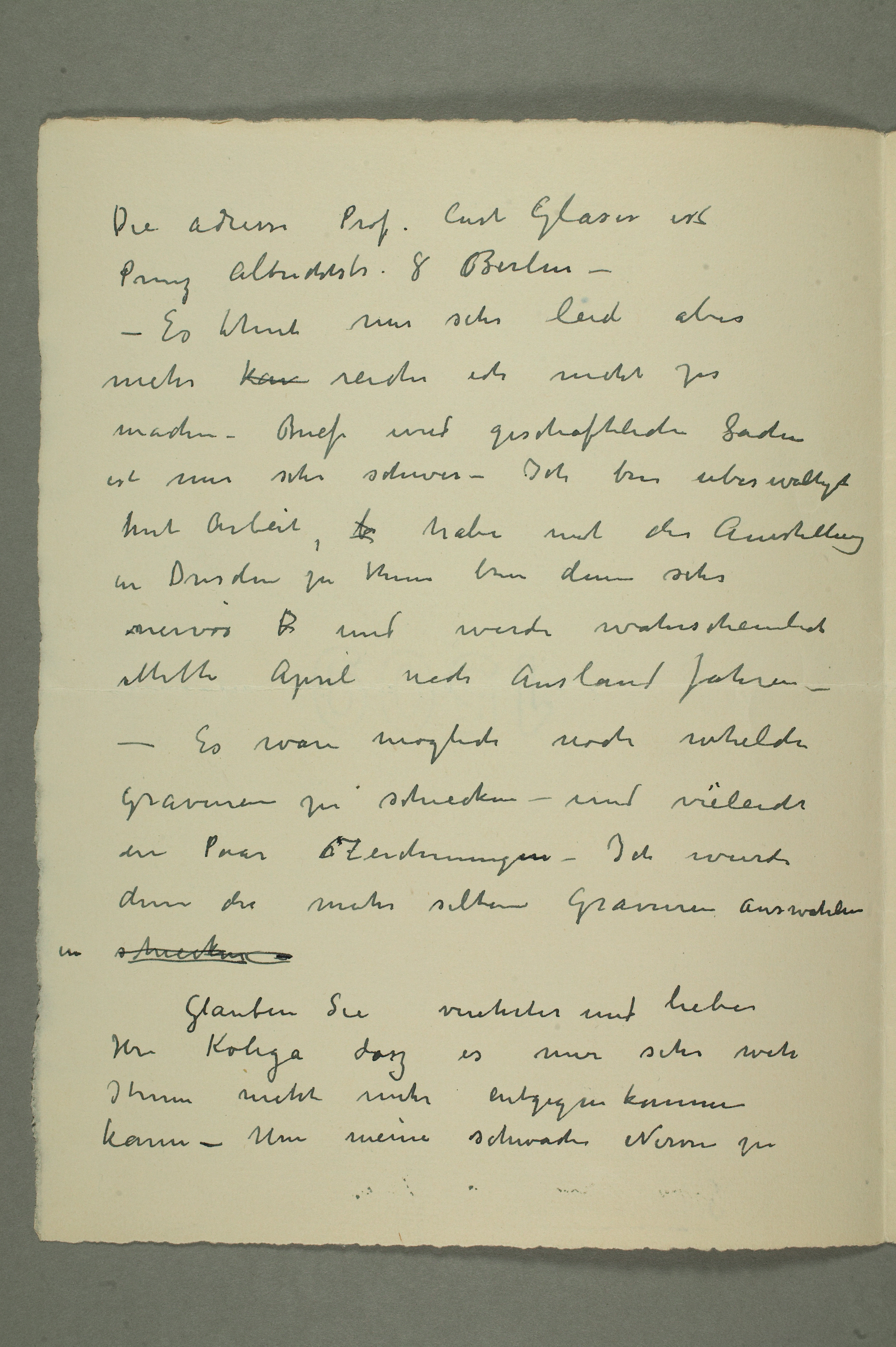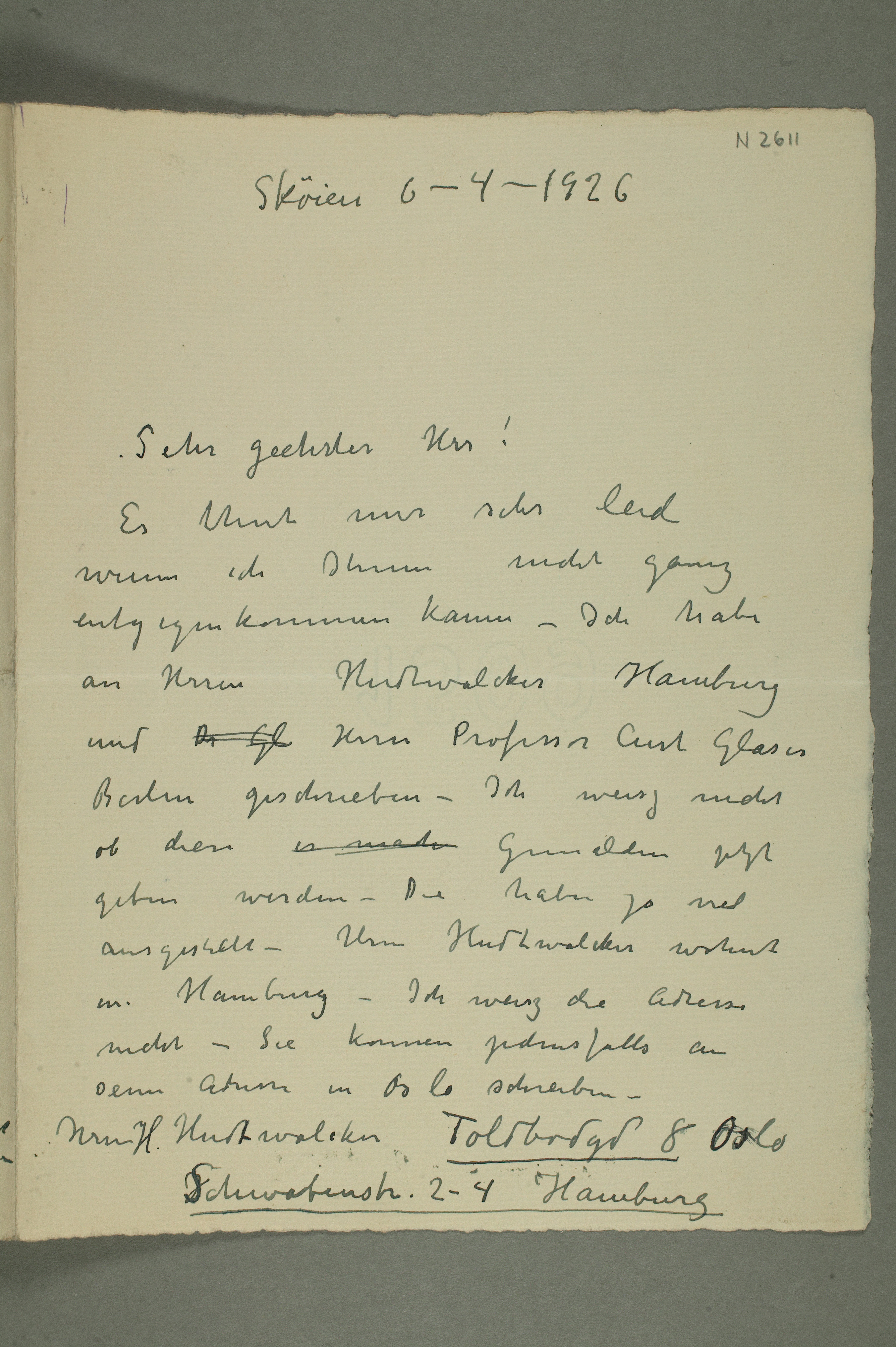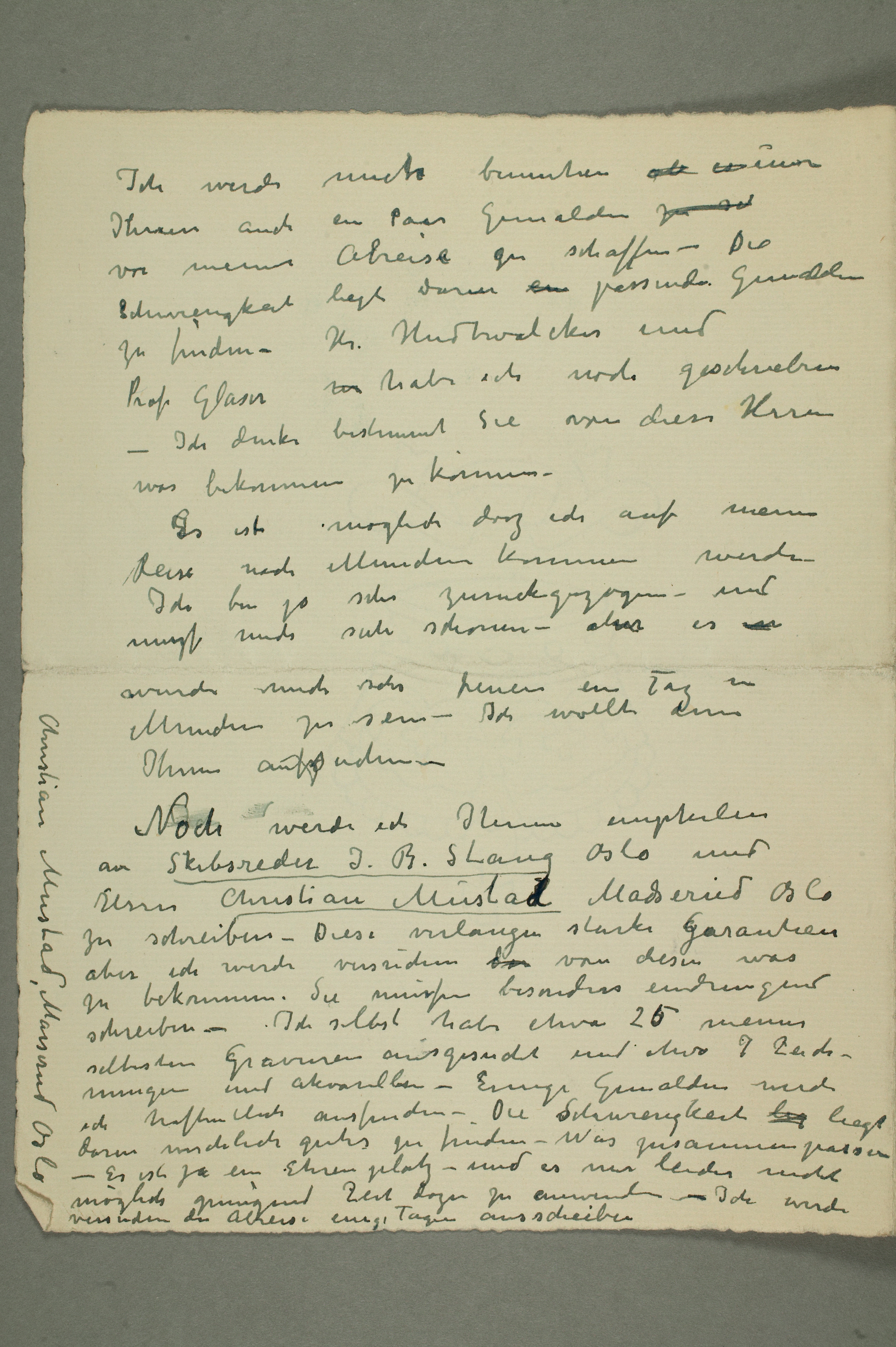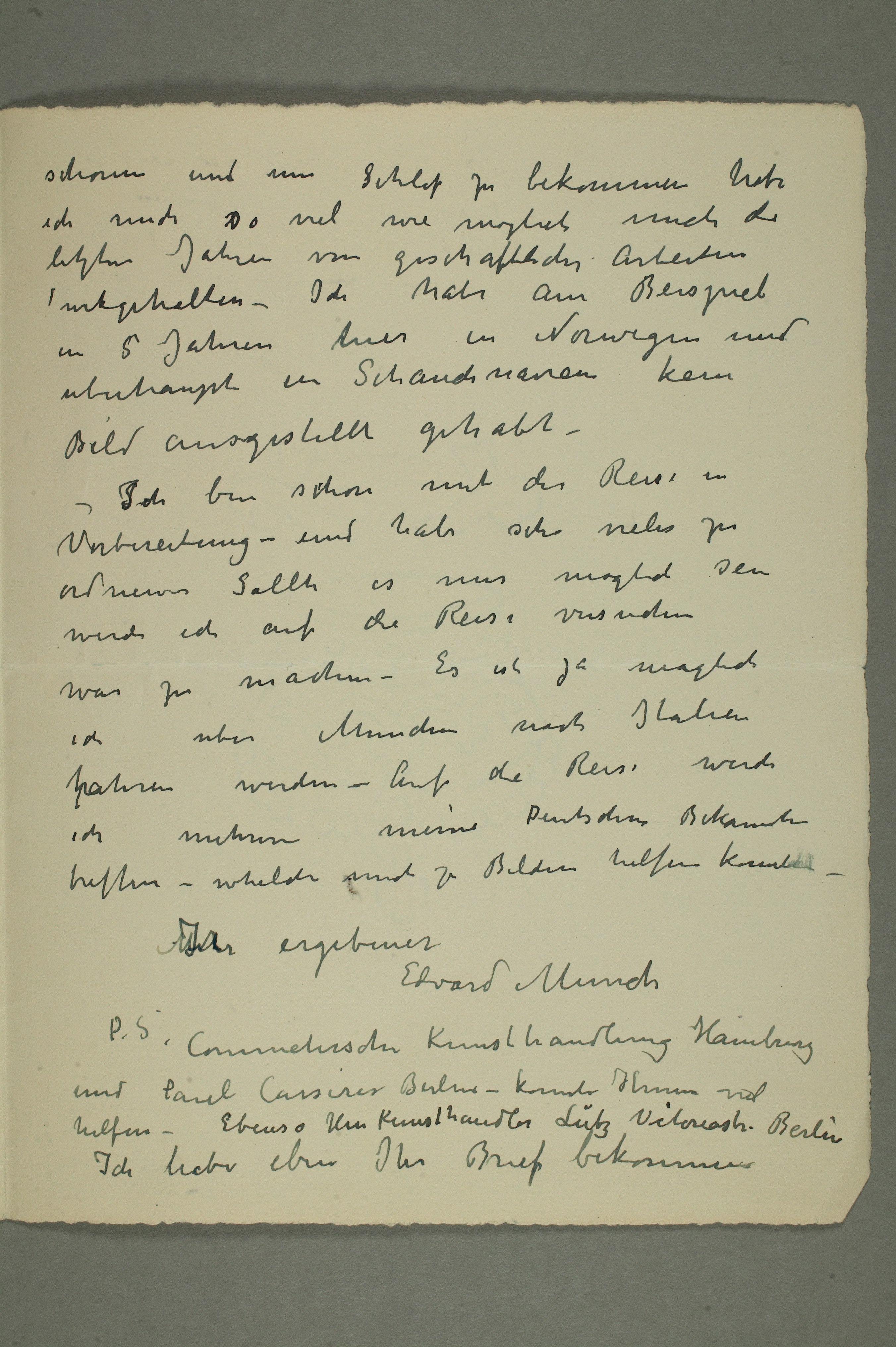 MM N 2611, Munchmuseet. Datert 6.4.1926. Brevutkast til Adolf Schinnerer, Münchener Neue Secession.