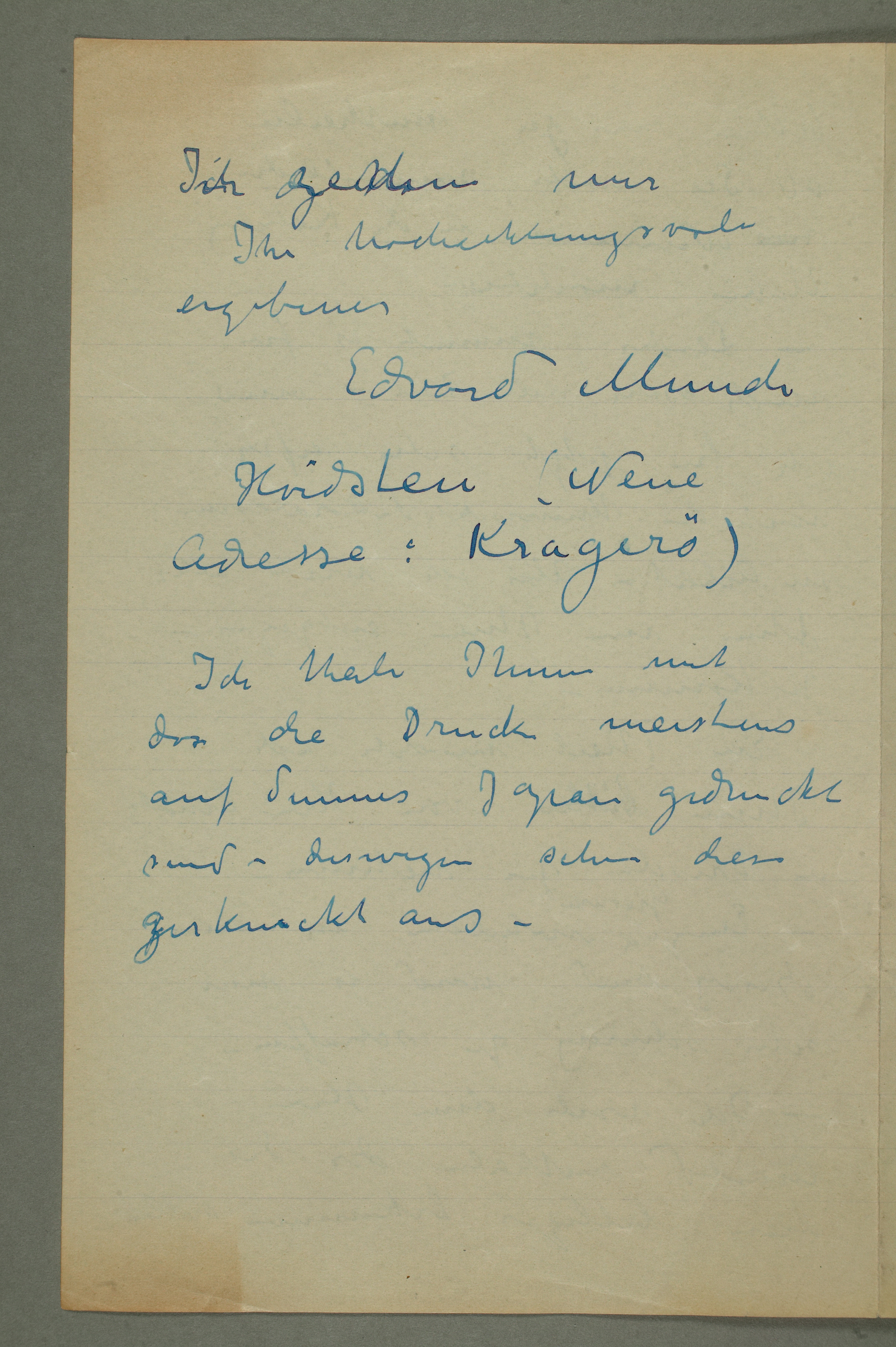 MM N 2618, Munchmuseet. Ikke datert. Brevutkast til Uidentifisert mann.