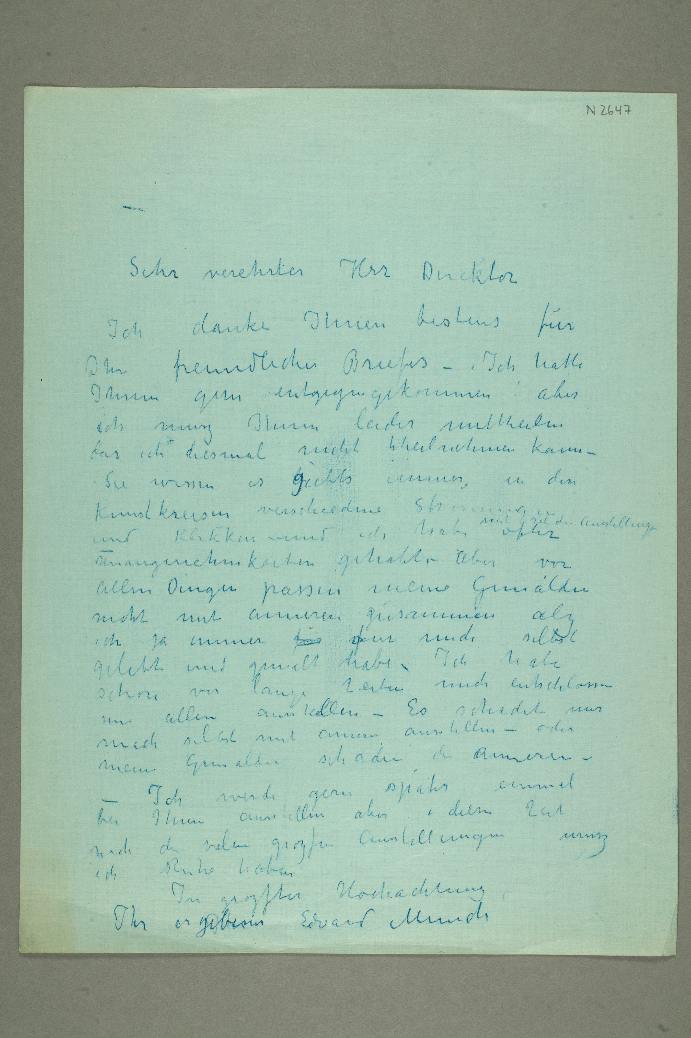 MM N 2647, Munchmuseet. Ikke datert. Brevutkast til Uidentifisert mann.