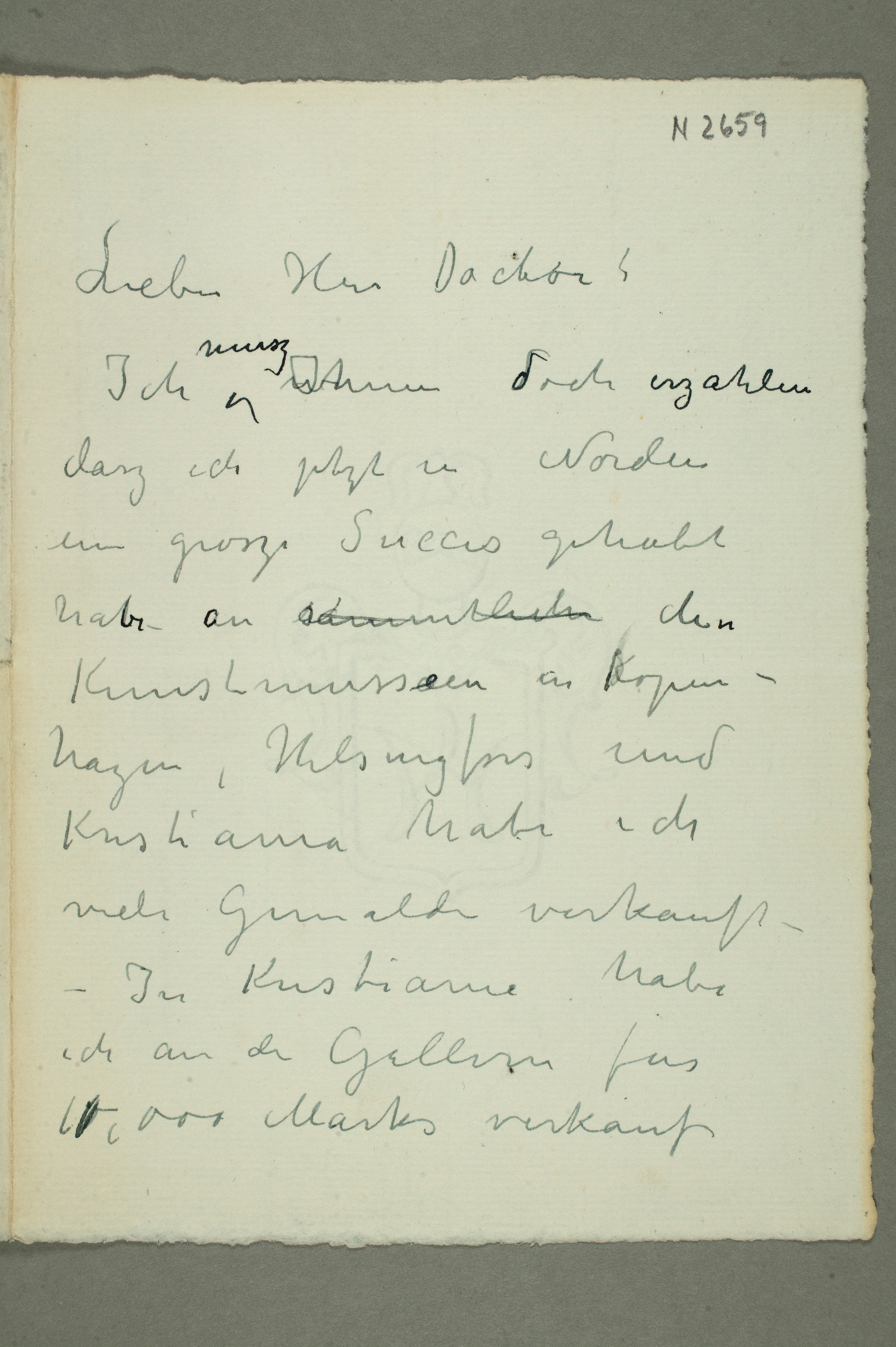 MM N 2659, Munchmuseet. Datert 1909. Brevutkast til Max Linde.