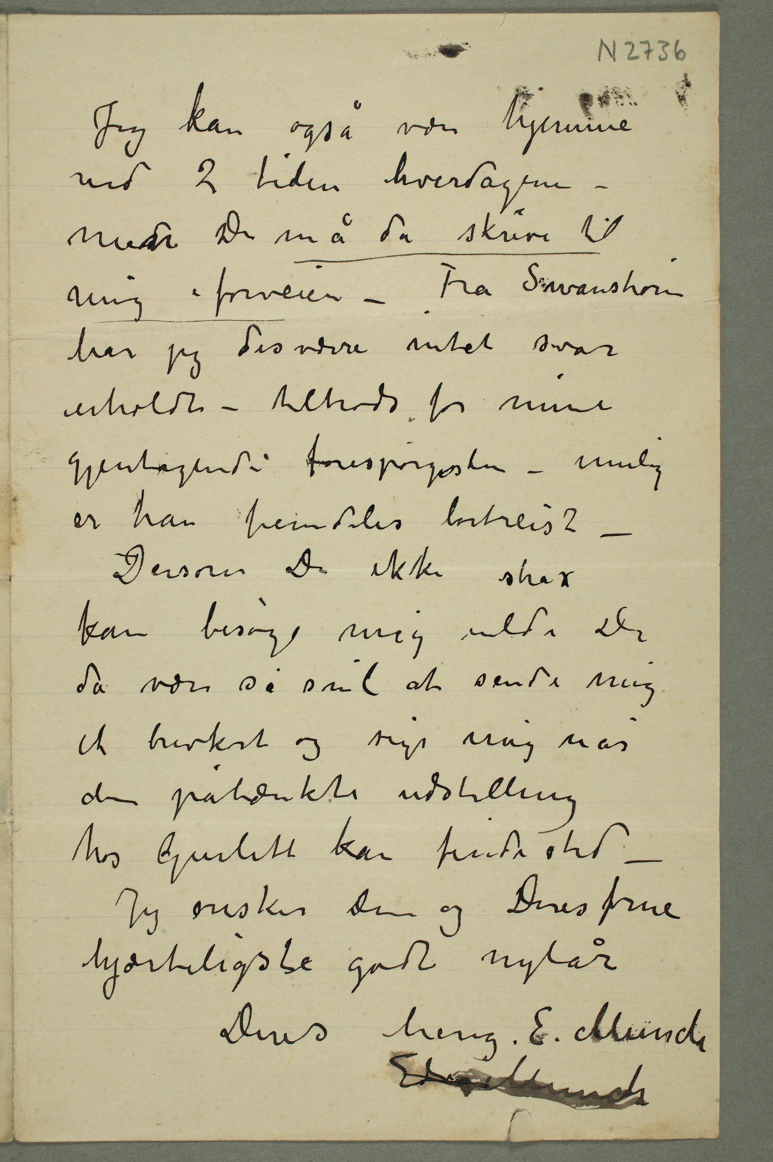 MM N 2736, Munchmuseet. Ikke datert. Brevutkast til Uidentifisert mann.