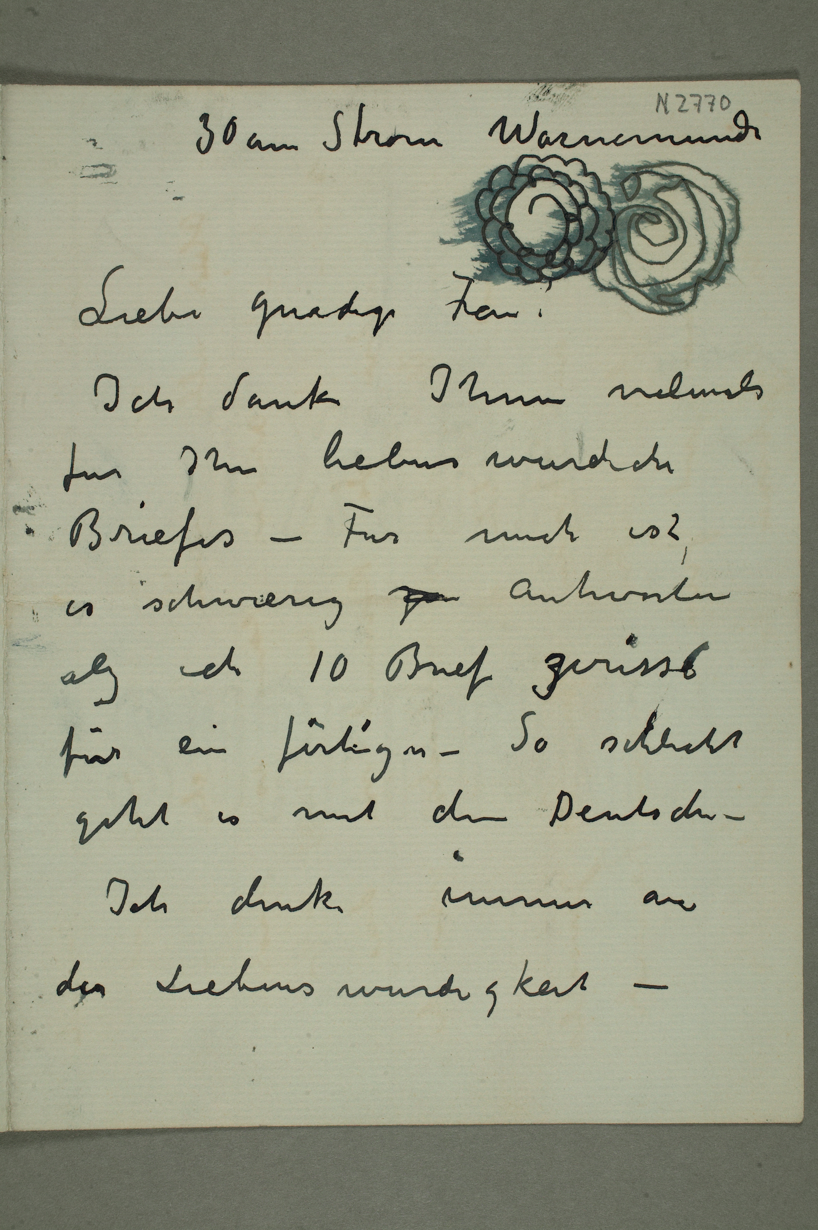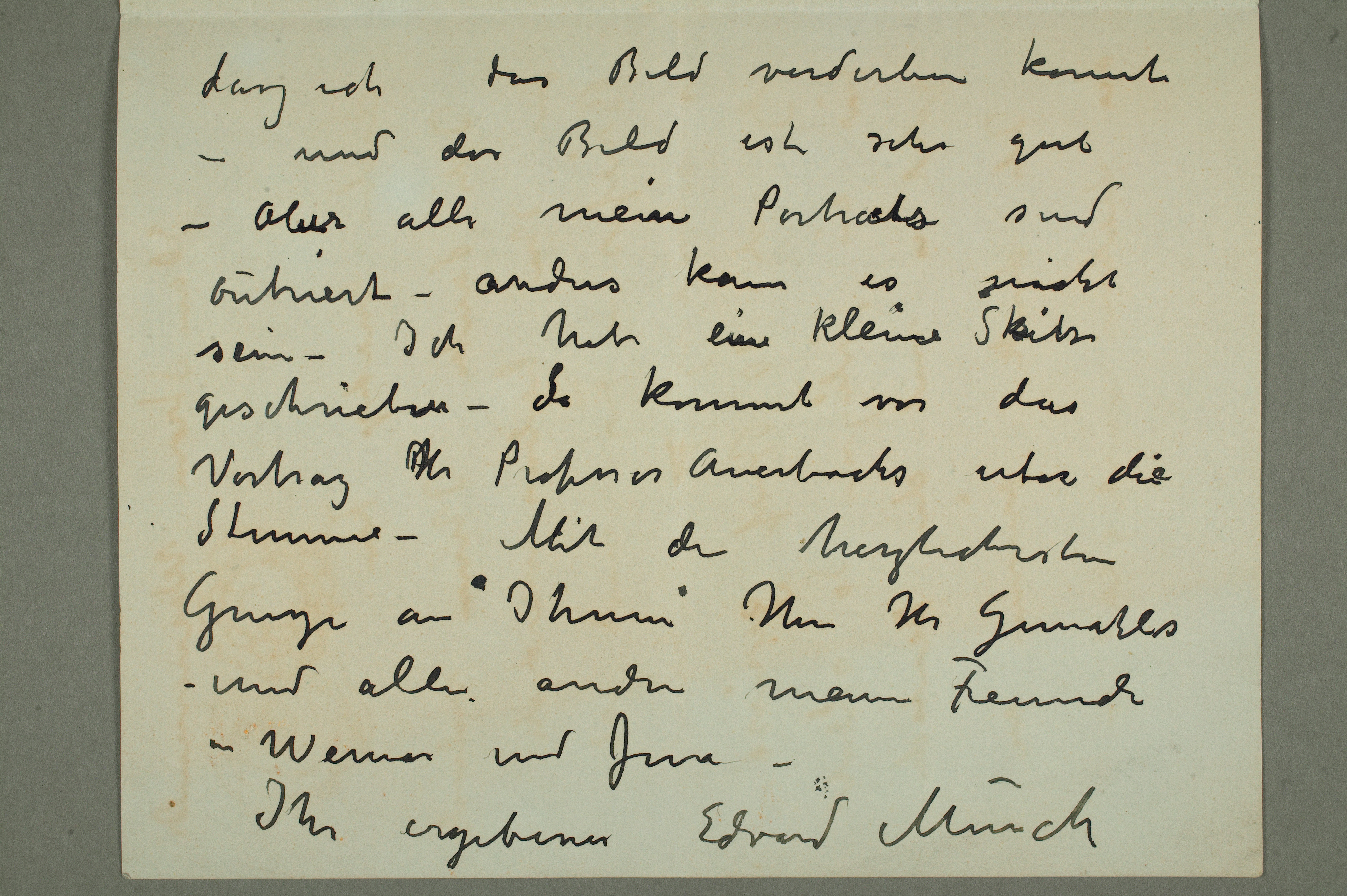 MM N 2770, Munchmuseet. Datert 1908. Brevutkast til Anna Auerbach.