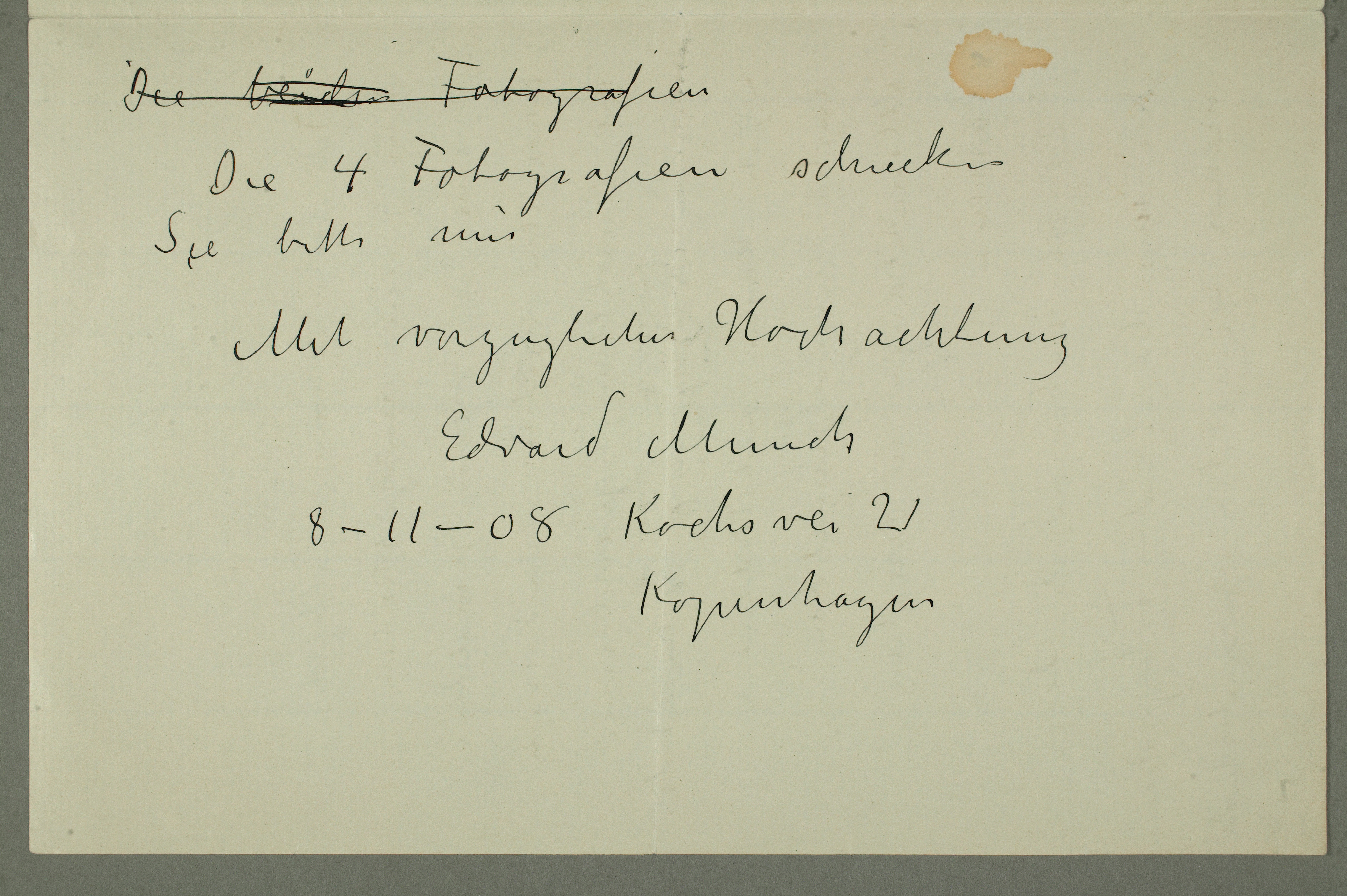 MM N 2780, Munchmuseet. Datert 8.11.1908. Brevutkast til Franz Hancke.
