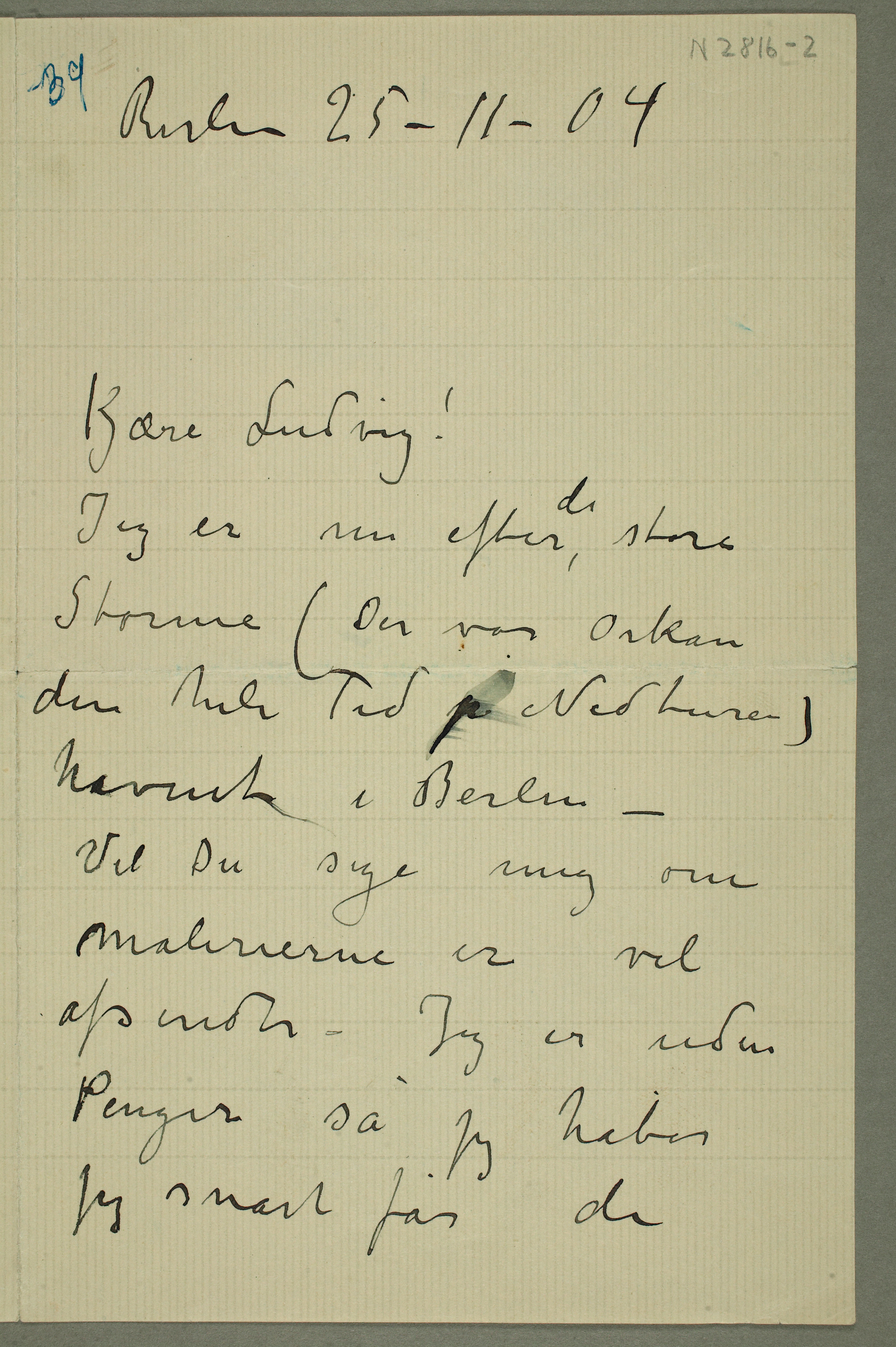 MM N 2816, Munchmuseet. Datert 25.11.1904. Brev til Ludvig Ravensberg