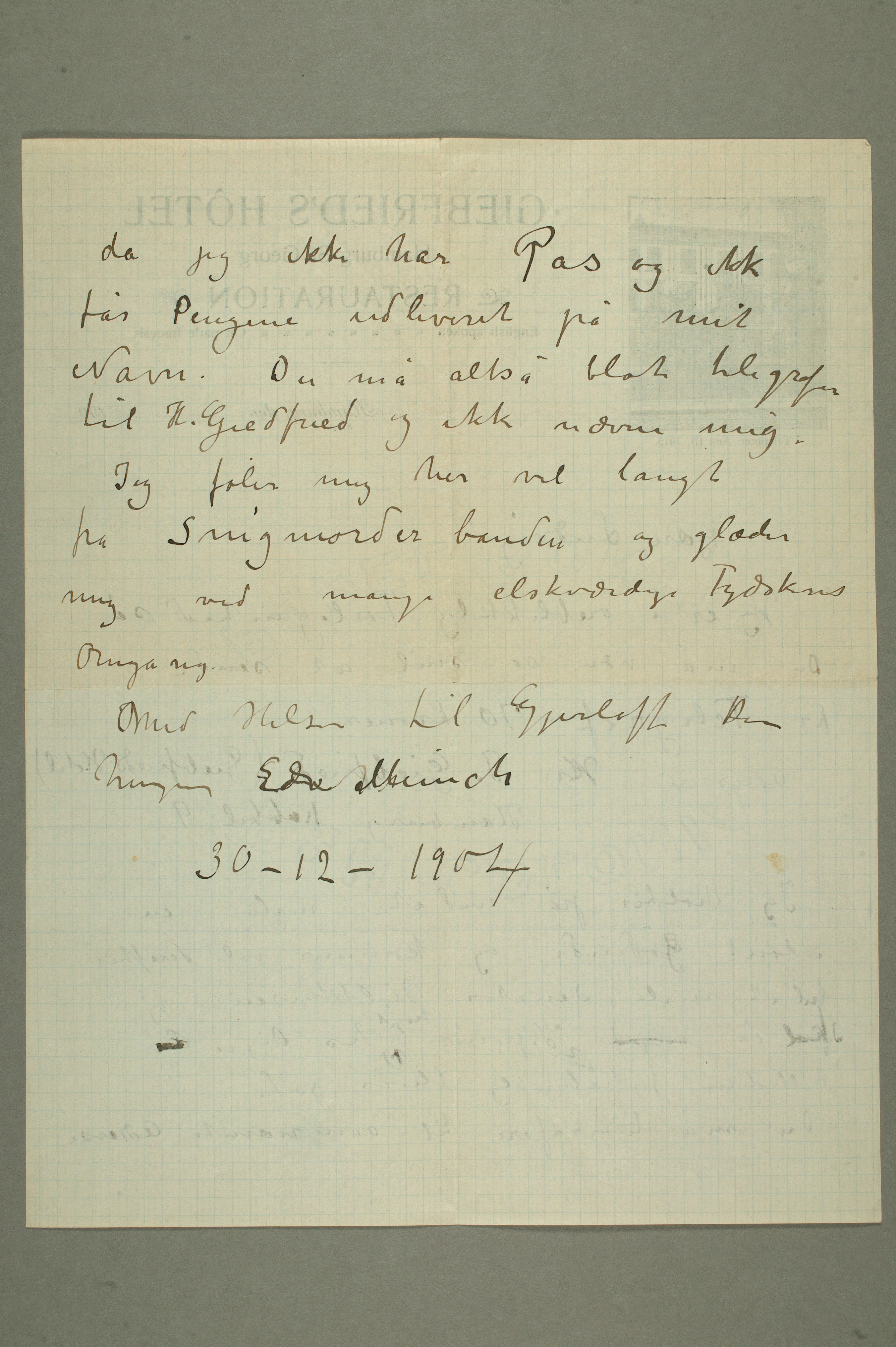 MM N 2822, Munchmuseet. Datert 30.12.1904. Brev til Ludvig Ravensberg