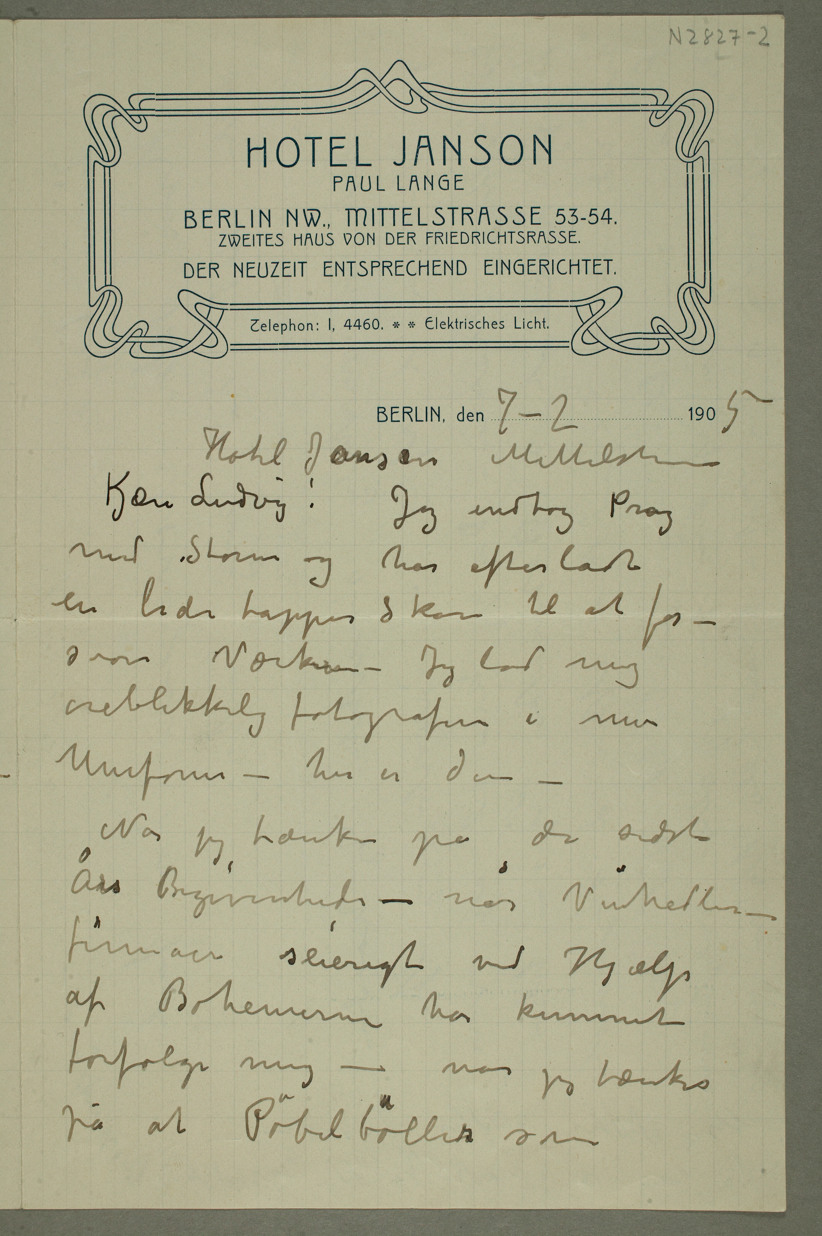 MM N 2827, Munchmuseet. Datert 7.2.1905. Brev til Ludvig Ravensberg